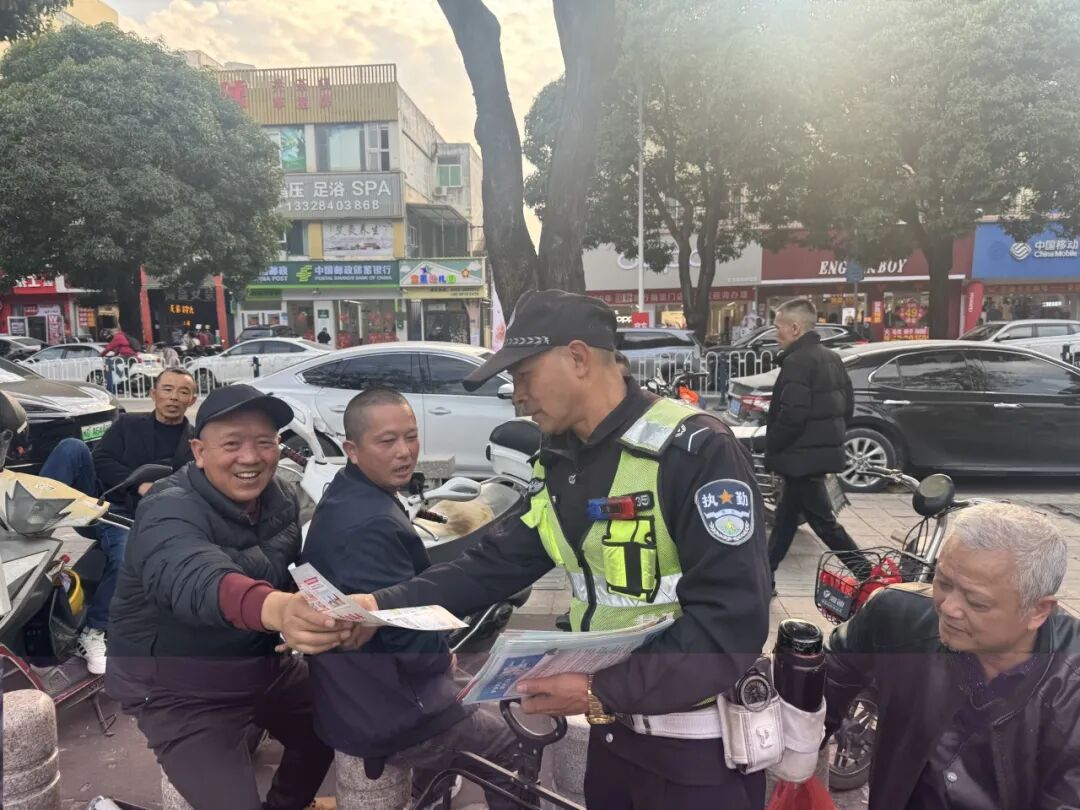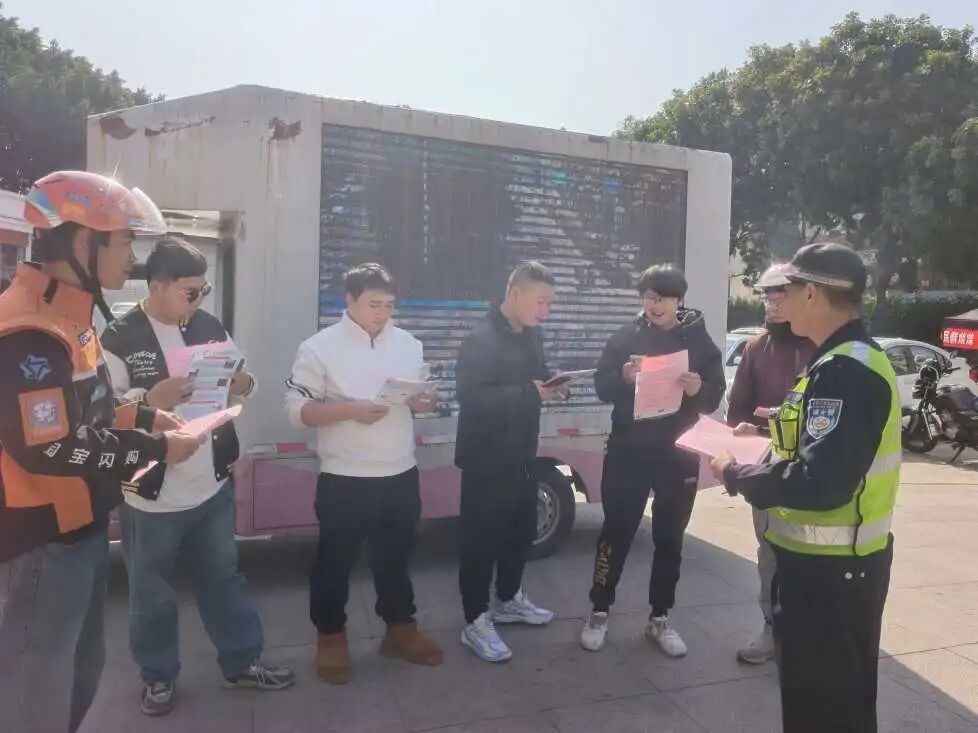 大队强化多元联动,推动形成“点面结合、全民参与”的宣教格局。一是深化“交所融合”。联合属地派出所开展入户走访,同步推进“交通+反诈”融合宣传,覆盖群众800余人,发放宣传资料8000余份,实现“一次宣讲、双重防护”,提升综合宣教效能。二是发动基层力量。组织社区网格员、安全员发放宣传资料1万余份,对重点对象开展提醒提示3万余人次,增强宣教渗透力。三是培育专项队伍。组建义务交警宣教团队,在重点时段、重点场所开展靶向宣传活动80余场次,覆盖群众6000余人次,有效凝聚群防群治、共建共治的宣教合力。 |