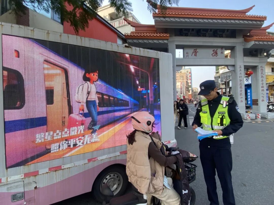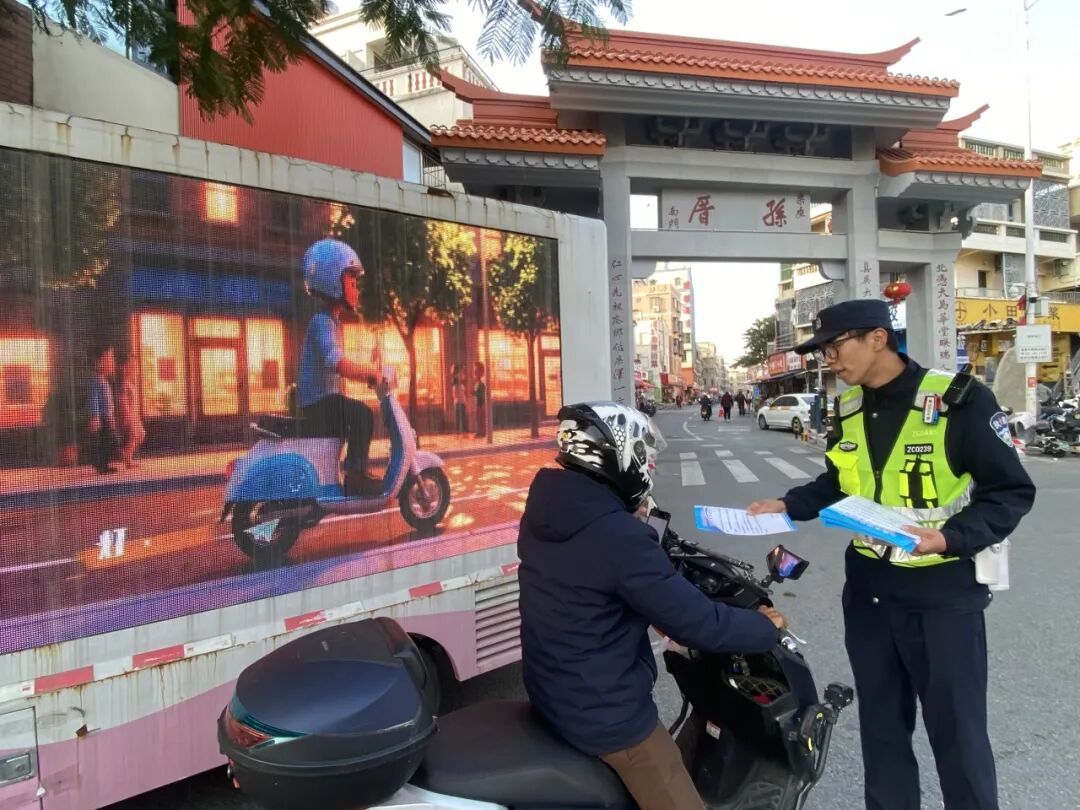 大队立足辖区实际,构建“大喇叭日日响、大篷车村村行、敲门入户户户到”三位一体宣教体系:依托全区26个农村“村村响”广播终端,不定时循环播放闽南语版交通安全提示,实现田间地头、房前屋后全覆盖;组织“交通安全大篷车”深入26个乡镇开展巡回展演,搭载警示教育片、互动体验设备,通过情景模拟、有奖问答等群众喜闻乐见的形式提升参与度。结合“美丽乡村行”活动,累计开展田间地头微课堂39场,惠及村民2000余人次。 02 坚持精准施策 提升宣教靶向性与实效性