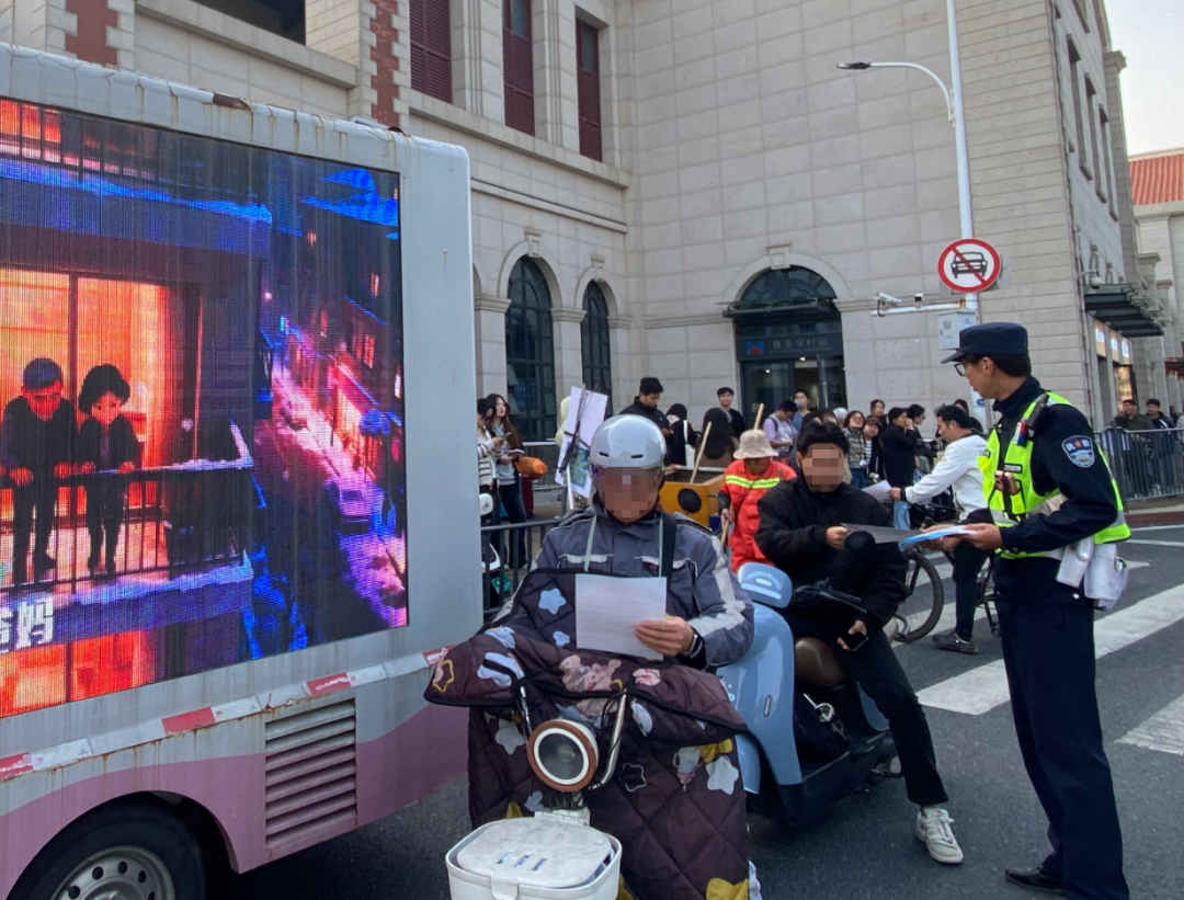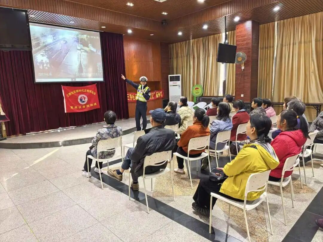一是精准摸排对接。联动属地社区、街镇开展专项摸排,两周内初步建成涵盖老年人及家属、二轮车使用者、农用车驾驶人、货运车辆驾驶人等四类重点群体的信息库,覆盖12万余人,并累计发送点对点安全提示短信8万余条。二是敲门宣教入户。组织交通安全“轻骑兵”联合派出所、社区网格员,对纳入“三必进”(交通违法人员、交通事故当事人、事故多发区域居民)范围的269名农村老年人、外来务工人员等重点对象开展上门宣教,有效弥合“数字鸿沟”。三是贴近民生宣教。结合民俗节庆,在社区活动中心、农贸集市等重点人群聚集场所,开展“957”交通安全宣教劝导活动(即“9条必讲、5项告知、7种必劝”)62场次,覆盖群众1万余人次,切实提升宣教覆盖面和接受度。 03 深化“平安敲门”行动 打通宣教“最后一米”