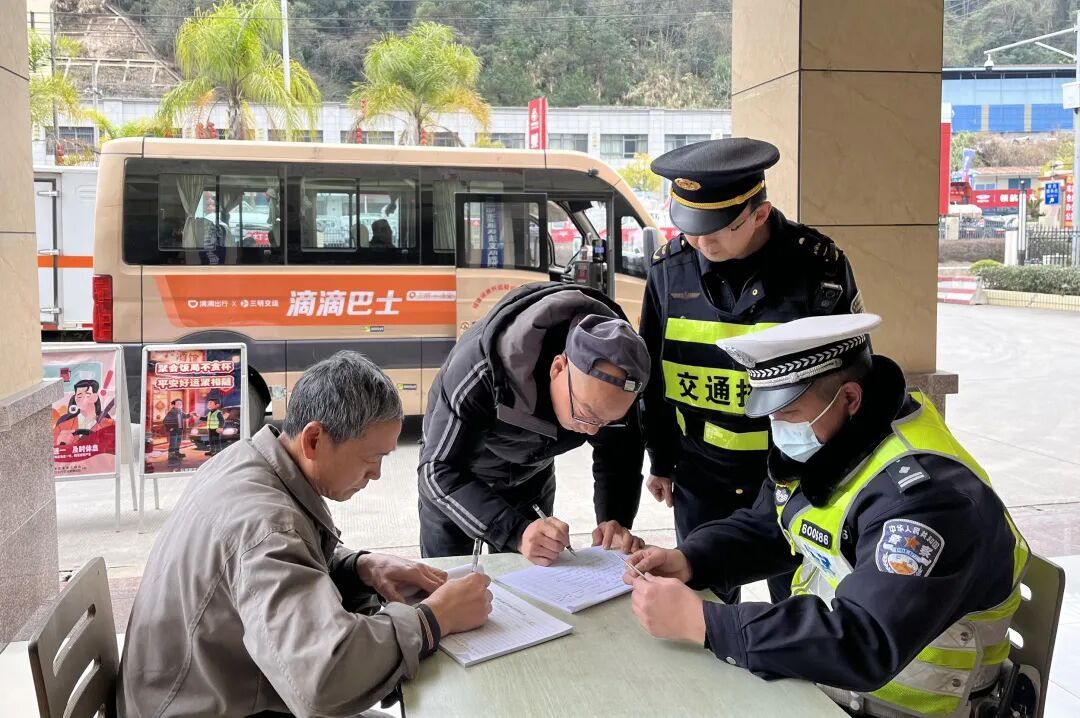 2月2日上午,三元交警联合区交通、公路部门在荆东春运服务站举行春运启动仪式。 源头走访除隐患 压实企业主体责