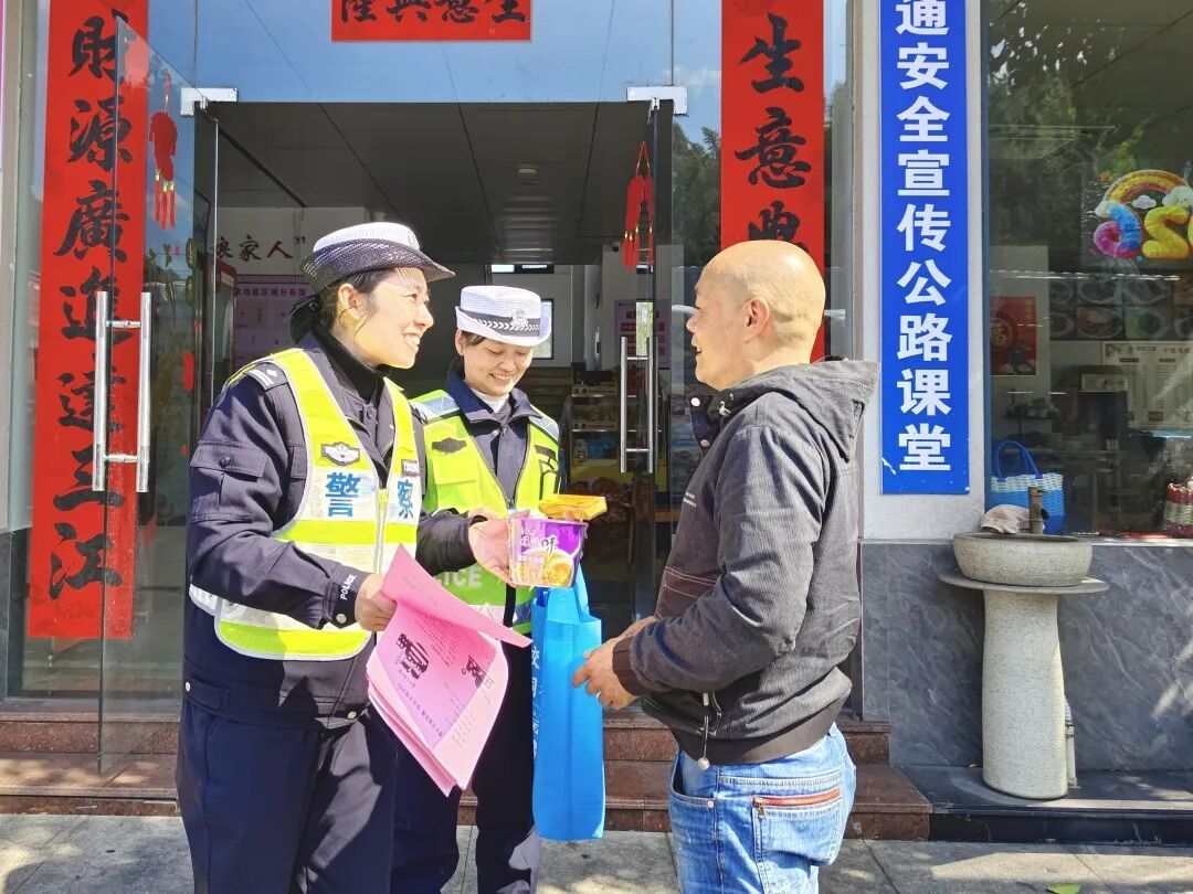 春运前夕,交管大队提前研判辖区交通安全形势,结合205国道车流潮汐特点、事故预防重点路段,组织民警实地走访排查,科学分析研判风险隐患,优化设置胡豆春运执勤点、中盛服务区公路课堂等宣传执勤阵地,细化执勤执法流程与便民服务举措,让执勤点成为安全防控的“前哨站”,为群众出行营造安全畅通的道路环境。 02 流动课堂 宣教随行