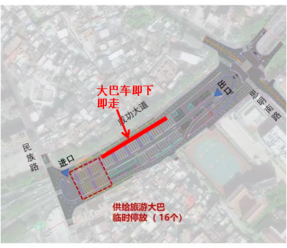 2月17日至22日,受限的旅游客运车辆可转移至成功大道演武桥下北侧辅道即停即走,停放厦港公交场站内。当辅道与场站停车饱和时,可至民族路寿山路口至鹭江道路口段道路一侧临时停车,停车不得影响交通,服从现场指挥人员引导,人车不分离。