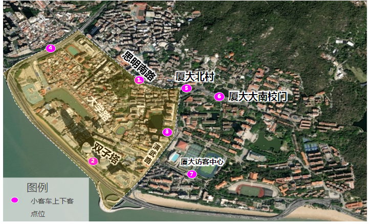 网约车、旅游客运车辆通行与停靠 思明南路演武路口至厦大大南门路段,2月17日起允许网约车全天驶入,通行时间不得超过8分钟。片区内设有8处共67个即停即走车位,并设置电子围栏,仅限即停即走车位上下客。