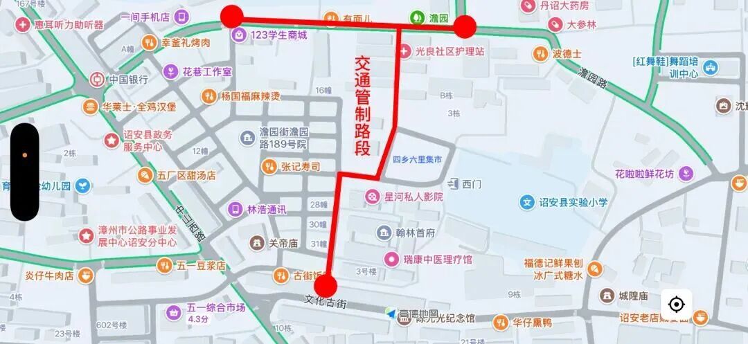为加强2026年春节期间诏安县中山路古城步行街、四乡六里周边的道路交通管理,确保道路交通安全、有序、畅通,根据《中华人民共和国道路交通安全法》及《中华人民共和国道路交通安全法实施条例》的有关规定,将于节日期间对中山路、四乡六里周边道路实施临时交通管制措施。现将有关事项通知如下: 01 中山路系列活动交通管制 管制时间: (1)2026年2月14日18:00至21日24:00禁止汽车类机动车进入中山路活动区域。 (2)2026年2月14日至21日每日18:00至21:30禁止一切车辆进入中山路活动区域。 管制地点: (1)中山路南侨古城管制点 (2)东路墘南峰路口管制点 (3)中山路中山公园路口管制点