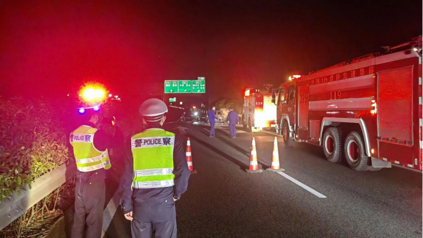 当晚,该中队张周福警组在宁上高速B道39公里康厝枢纽路段驻点,开展交通警示与疏导工作。19时07分,执勤民警发现一辆号牌为闽CG开头的小型汽车停在前方不远处,车身冒烟起火。民警第一时间冲至现场打开车门核查,在确认车内无人员被困后,迅速组织完成现场人员安全撤离,严防次生意外发生。 为保障现场安全与通行秩序,民警在自燃车辆后方快速完成安全布控,同步联动消防、路勤、施救部门增援,并向指挥中心及大队带班领导汇报现场情况,申请实施交通管制。 19时33分,消防救援力量抵达现场并立即开展灭火作业,仅用时3分钟便成功扑灭明火。19时49分,事发路段采取快车道单车道放行措施,最大限度降低事故对交通通行的影响。20时10分,拖车抵达现场,20时18分,起火车辆被安全拖离,事发路段全面恢复正常通行。