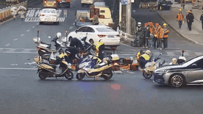 2月20日17时许,正值晚高峰,鼓楼交警在工业路乌山路口发现路面散落大量水果。铁骑队员一边疏导车辆注意避让,一边迅速协助司机捡拾装车。很快,路面恢复整洁,交通恢复正常。 别怕 叔叔帮你找妈妈