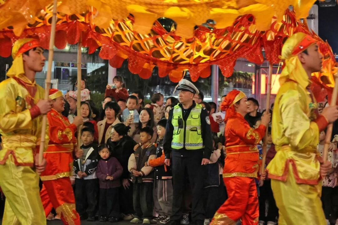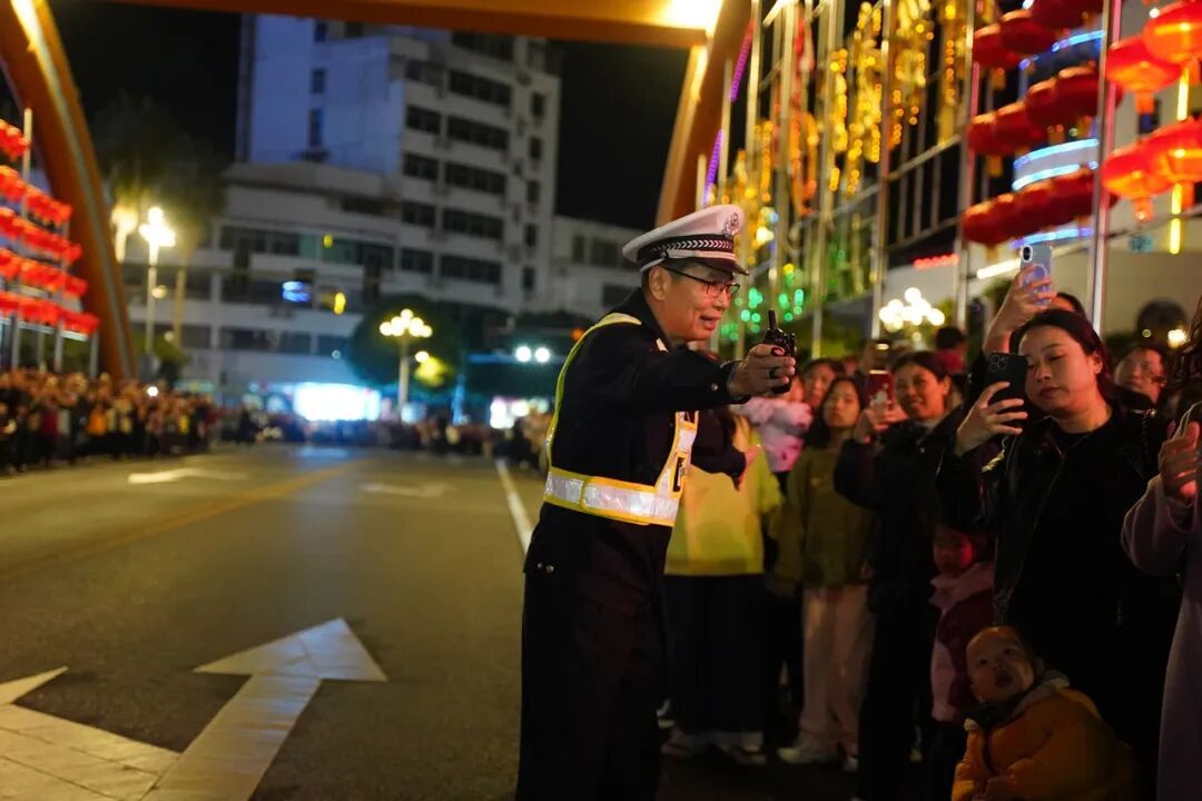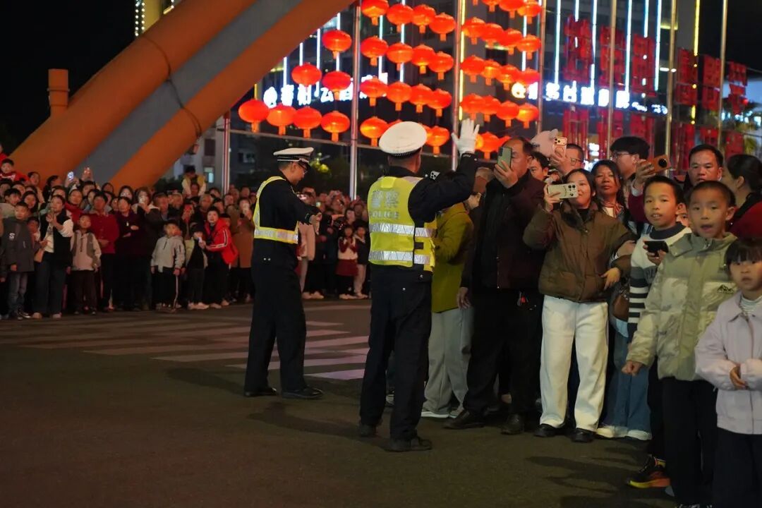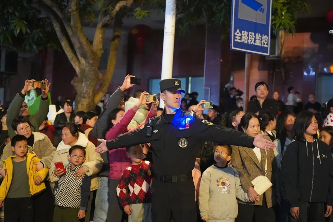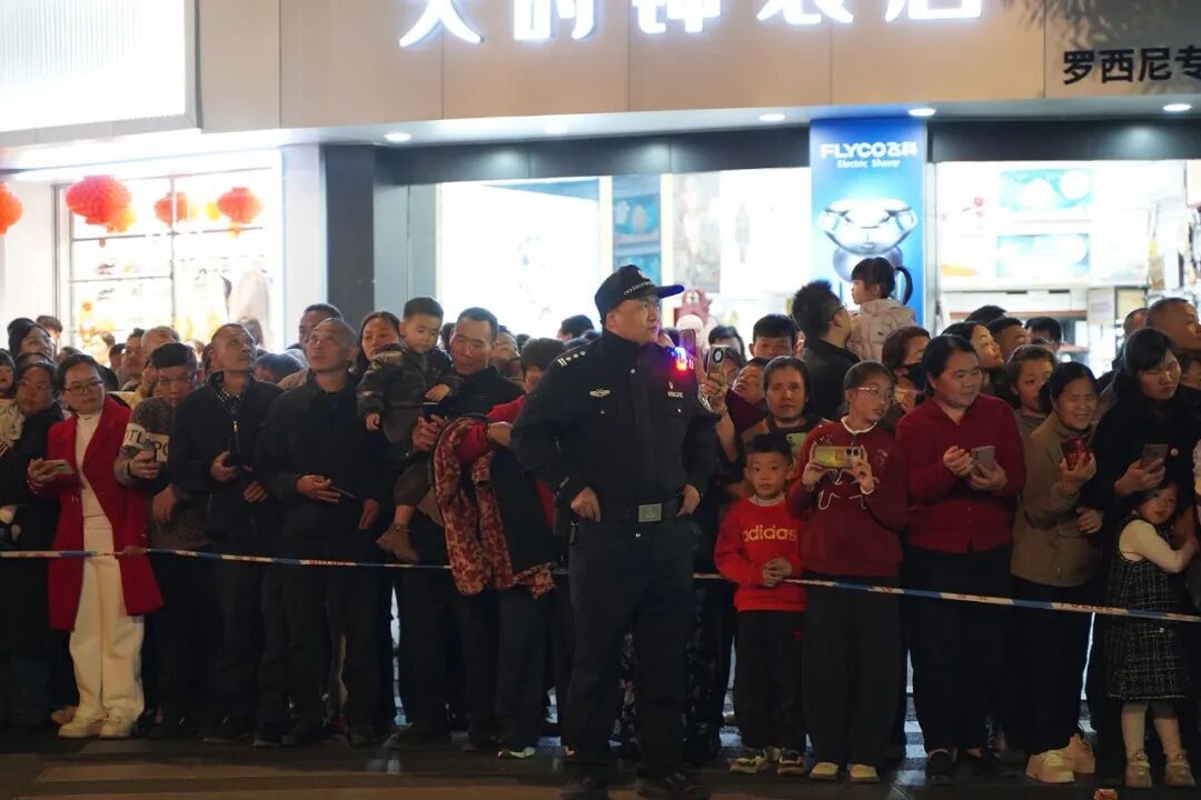 “请大家有序观演,不要拥挤!”巡游路线两旁,一声声温馨提示温暖人心,执勤民警辅警时刻关注着现场的一举一动,及时处理各类突发情况,全力保障群众观演安全,让市民朋友在欢声笑语中感受充满安全感的“平安年味”。