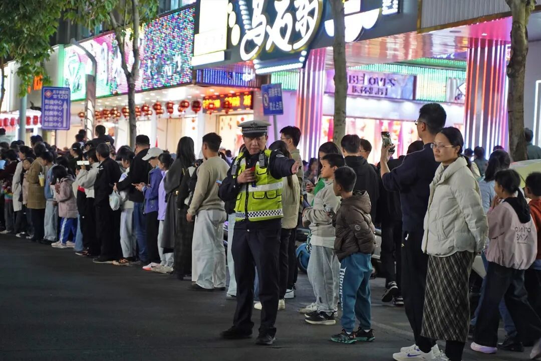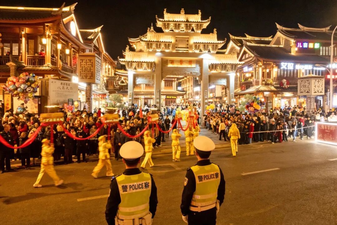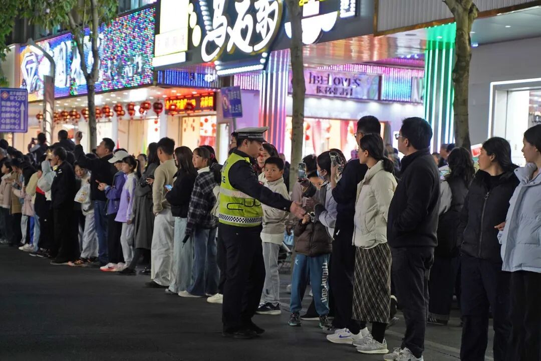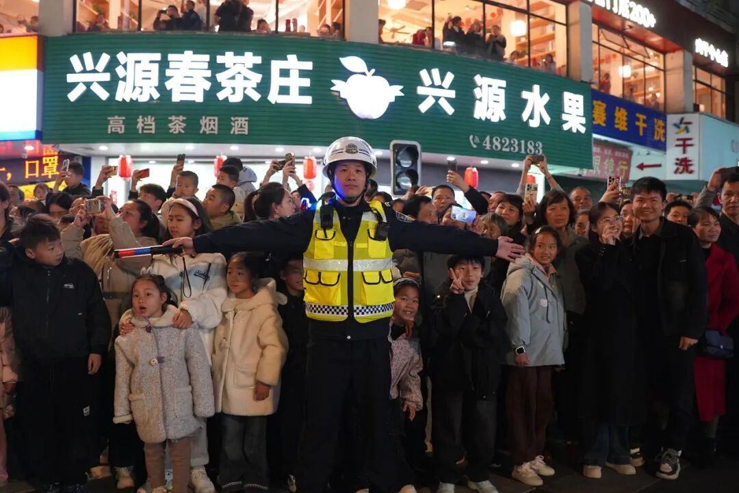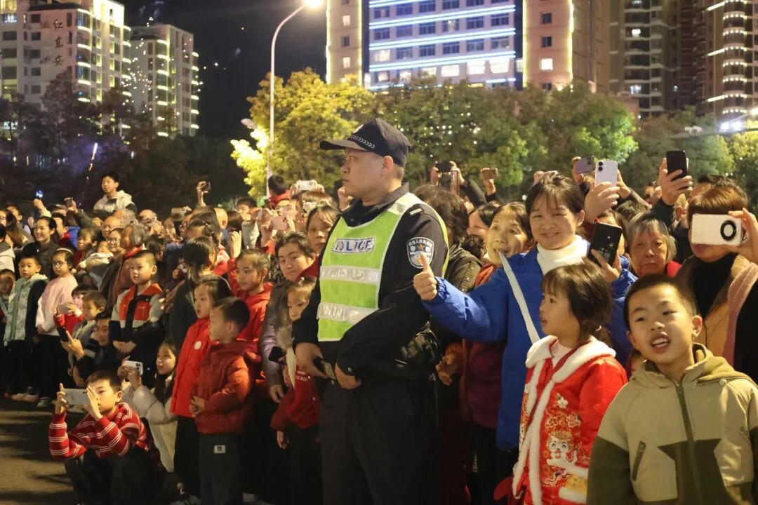 “请大家有序观演,不要拥挤!”巡游路线两旁,一声声温馨提示温暖人心,执勤民警辅警时刻关注着现场的一举一动,及时处理各类突发情况,全力保障群众观演安全,让市民朋友在欢声笑语中感受充满安全感的“平安年味”。