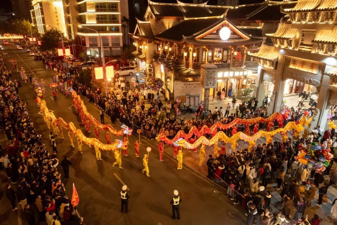 马年新春,龙腾狮跃,锣鼓喧天。2月20日,正月初四,夜幕刚落,武平县城就被浓浓的喜庆与热闹填满。“龙马精神·非遗迎春”暨“福满武平·百灯闹春”巡游巡演活动火热开场,由龙灯、马灯、狮灯等组成的非遗灯队环绕武平城,传统民俗的独特魅力在光影交错间尽情绽放,让群众和游客在热闹氛围中感受“客家年”的厚重文化底蕴。