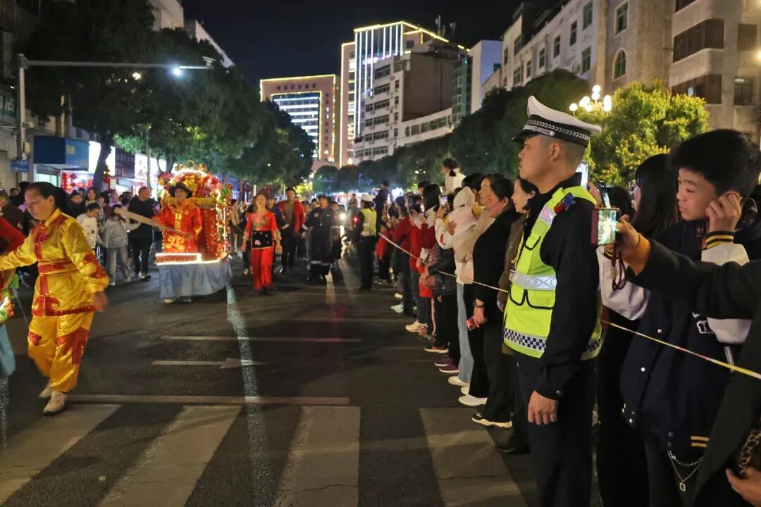 满城灯火映照团圆路,熙攘人群汇聚民俗欢。巡游现场,全体执勤民警辅警坚守岗位、密切配合,圆满完成民俗巡游活动安保任务,用实际行动守护群众平安喜乐,让市民朋友在欢乐祥和的氛围中,尽享传统民俗魅力,平安欢度马年新春。