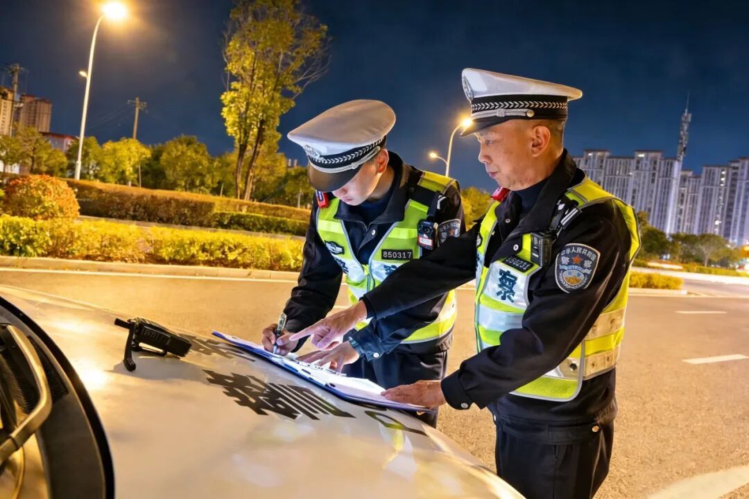 ▲周水生指导陶力川勘察事故现场 勘查结束后,周水生指着事故现场,结合案例向陶力川讲解道:“春节期间,电动车逆行、驾乘人员不佩戴安全头盔等交通违法行为频发,极易引发道路交通事故。今后执勤时,要多提醒过往群众,骑乘电动车务必佩戴安全头盔、不逆行、不闯红灯,自觉遵守交通法规,始终将自身安全放在首位。”陶力川认真聆听、详细记录,将周水生的每一句叮嘱都牢记在心里,默默汲取着执勤工作经验。 夜幕降临,新年的烟花在夜空中璀璨绽放,喜庆的氛围弥漫在小城的每一个角落。而周水生与陶力川依旧坚守在执勤岗位上,接警处警、疏导交通、处置事故,有条不紊地开展各项交管工作,守护着辖区路畅人安。休息间隙,陶力川忍不住问道:“师傅,三十多年一直坚守在交管一线,不分节假日、不分寒冬酷暑,您觉得累吗?”