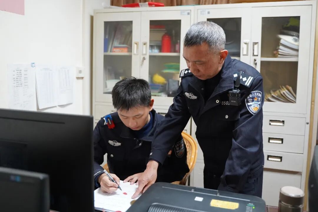 ▲周水生对陶力川开展业务指导 周水生望向窗外缀满灯笼的街巷说:“累肯定是有的,我们干交管工作,不分寒冬酷暑,没有节假日,只要辖区发生事故、出现拥堵,就要第一时间赶赴现场。但每当看到群众平安出行、万家灯火祥和安宁,就觉得所有的辛苦付出都值得。”说完,他转头看向陶力川,眼神中满是期许:“我就快退休了,守护辖区群众平安出行的重任,今后就要靠你们年轻人接续担当了。交警这份职业,没有惊天动地的壮举,却需要日复一日的坚守,希望你能牢记初心、履职尽责,对得起这身警服,对得起人民群众的信任与期盼。”陶力川用力点头,眼中满是坚定:“师傅,您放心,我一定会虚心向您学习,刻苦钻研业务,传承好您的这份坚守与担当,用实际行动守护好辖区群众的平安出行,不辜负您的嘱托和这身警服的使命。” 薪火相传守初心,接力护航护民安。在武平警营中,像周水生、陶力川这样的新老民警还有很多。老民警以一生坚守,生动诠释了“人民公安为人民”的初心使命与责任担当;新民警主动接过前辈手中的接力棒,以青春之力守护万家灯火、护航群众平安。他们的默默坚守,是新春佳节里最动人的风景;他们的忠诚守护,是送给辖区群众最真挚、最温暖的新春祝福,用责任与担当书写着新时代公安民警的使命答卷。