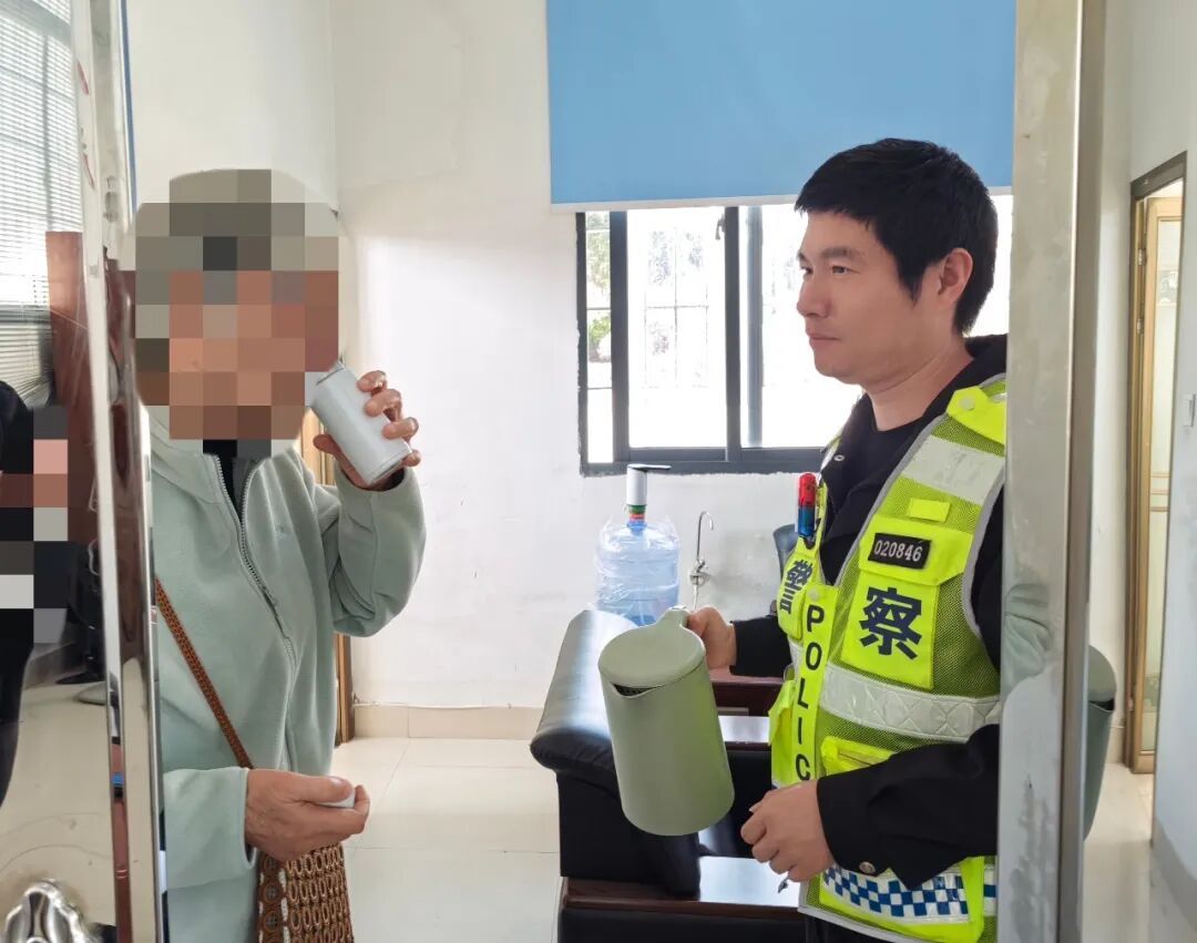 ▲2月22日上午,一名来厦旅游的老年游客因老伴需温水服药,向一大队凤南中队执法站求助。民警立即为老人提供热水,协助服药,并贴心指引进岛路线,暖心服务获得游客好评。