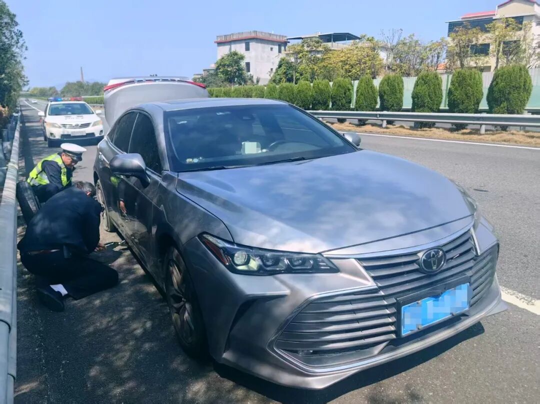 ▲2月19日中午,二大队民警巡逻至漳武高速B道58Km处时,发现一辆小车因爆胎停在应急车道。民警立即做好安全防护,迅速帮助驾驶员更换轮胎,及时消除安全隐患,获群众点赞。