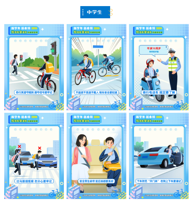 一定要注意: 根据《中华人民共和国道路交通安全法实施条例》第七十二条 驾驶电动车须年满16周岁 不得边骑车边嬉戏打闹 必须遵守交通法规 驾车出行注意 请驾驶私家车接送学生的家长 提前规划出行路线 预留足够的时间,注意行车安全 驾驶人和乘客都要系好安全带 如果是接送年纪较小的孩子 还应当正确使用儿童安全座椅