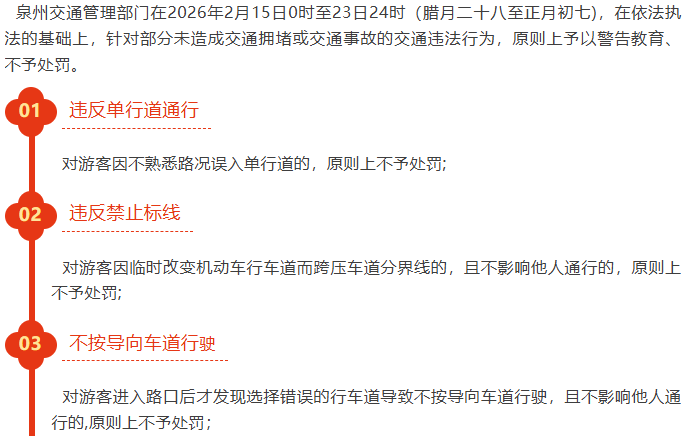 民生导向 暖心服务 今年春节假期,福建文旅市场全面升温,成了全国游客奔赴的“福”味目的地。各地推出“轻微违法不予处罚”、增设免费停车位等措施,让外地游客和广大市民朋友,畅享温馨便利的假期。