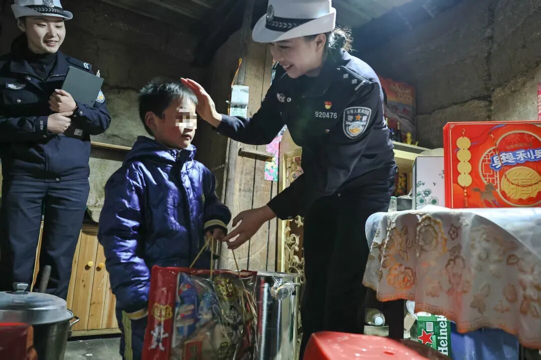 民警到受助学子家中了解他们学习生活情况 “家门贴春联,心里添喜气,这副‘守法传家远,勤学筑梦长’的春联,送你们过大年!”走进康厝乡一名学子家中,民警一边递上红彤彤的春联,一边笑着送上新春问候。不大的屋子里,旧家具擦拭得干干净净,墙上贴着孩子工整的奖状。民警放下手中的年货,将助学红包塞进孩子爷爷手中,轻声询问:“孩子最近学习怎么样?生活上有没有什么困难?”话语间,满是家人般的关切。 得知孩子自幼父亲去世,母亲改嫁,一直跟随爷爷奶奶生活,家中仅靠低保金维持生计,民警轻轻抚摸着孩子的头,化身温柔的“知心姐姐”:“困难只是暂时的,你这么懂事好学,一定要相信自己,好好读书,将来一定能为家里撑起一片天!”温暖的鼓励像一束光,照亮了孩子眼中的憧憬。