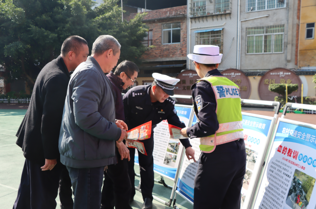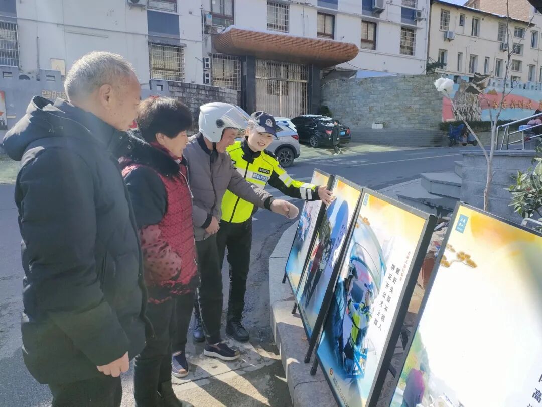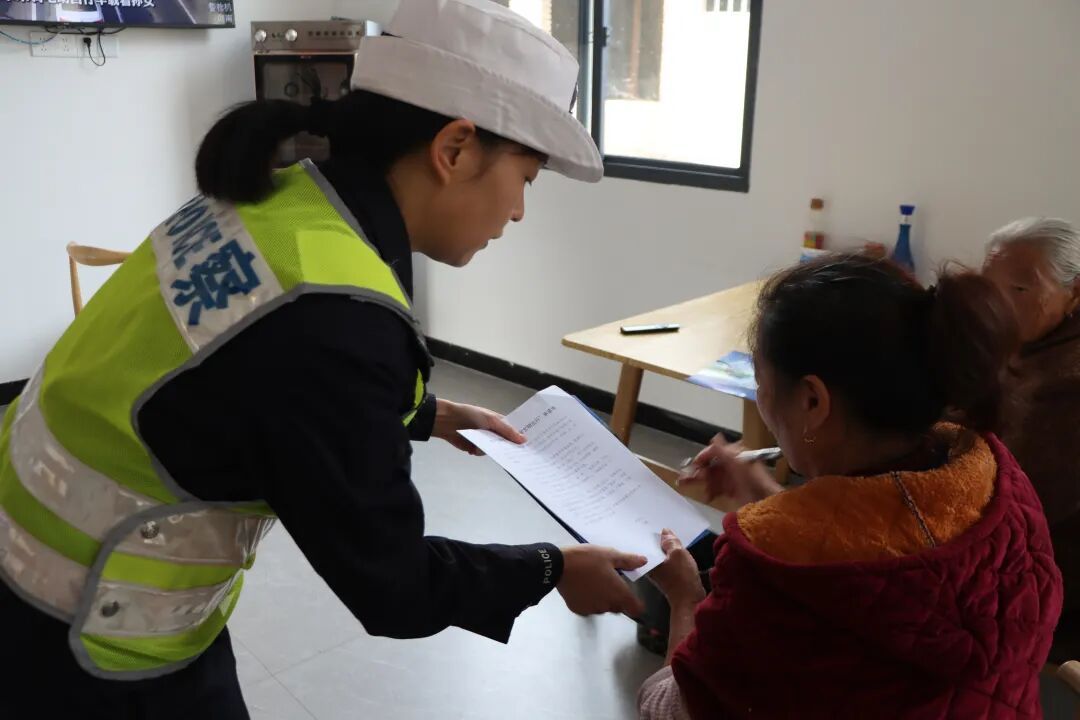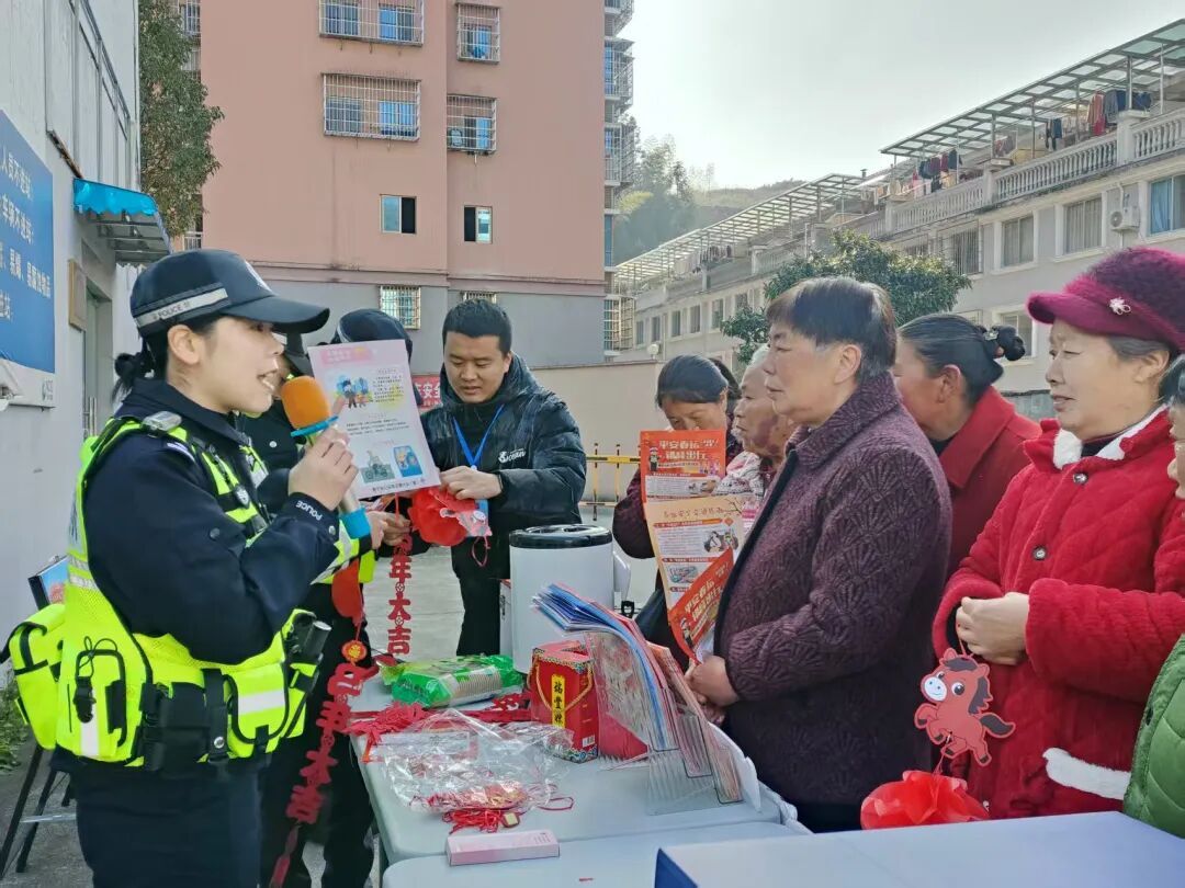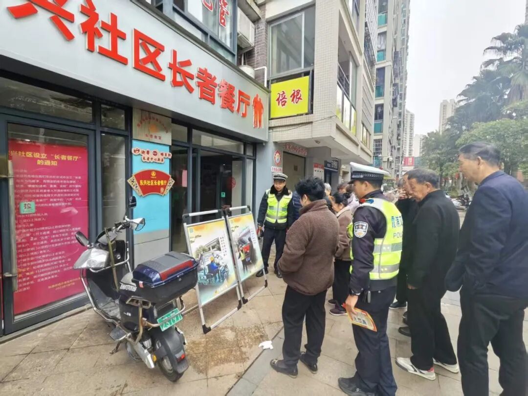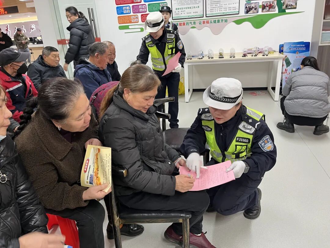 民警结合展板内容进行现场讲解,用方言耐心解答老人提问,确保安全知识真正听得懂、记得住、用得上。