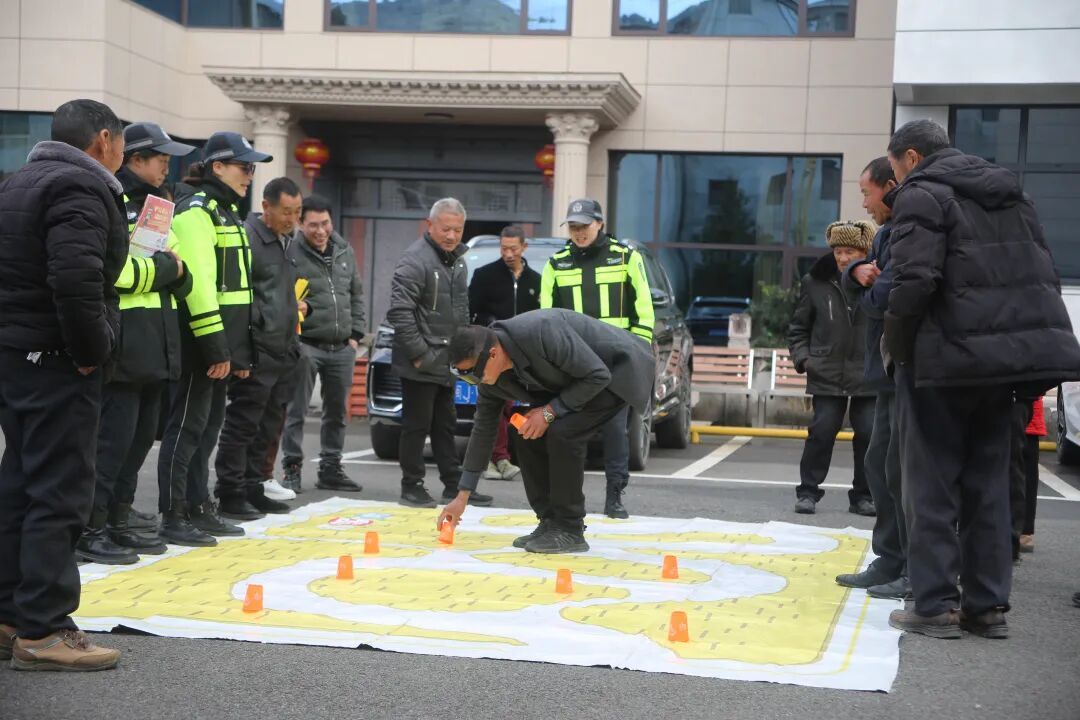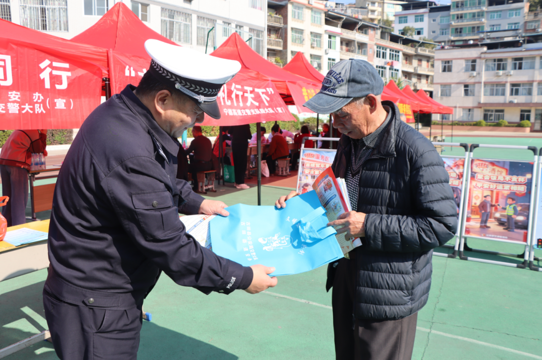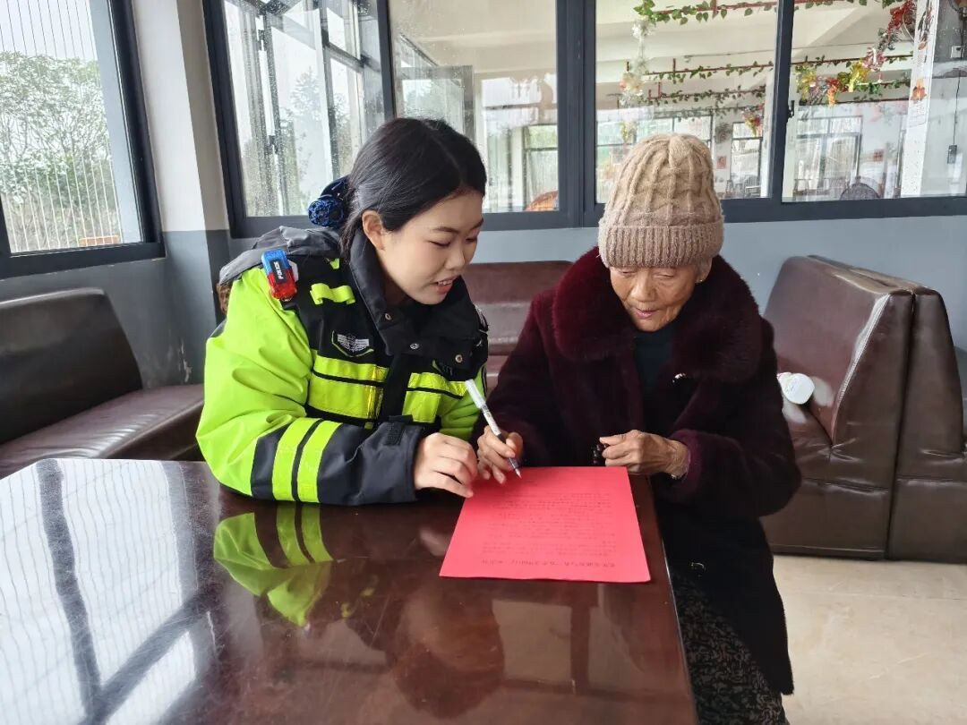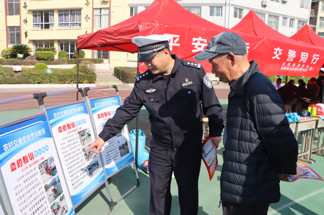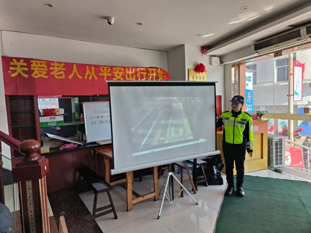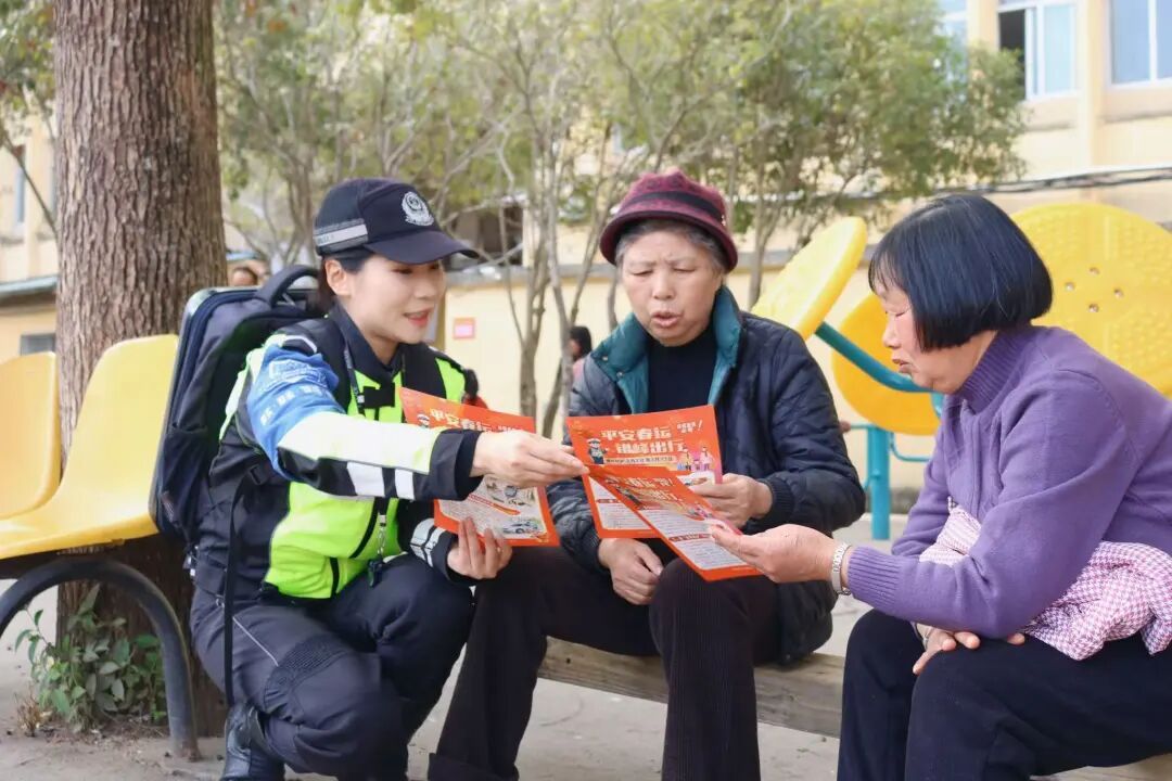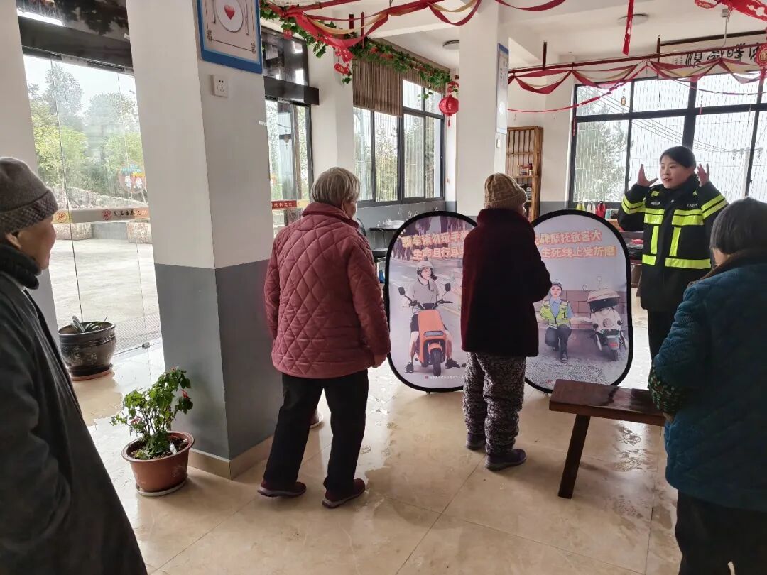 民警结合展板内容进行现场讲解,用方言耐心解答老人提问,确保安全知识真正听得懂、记得住、用得上。