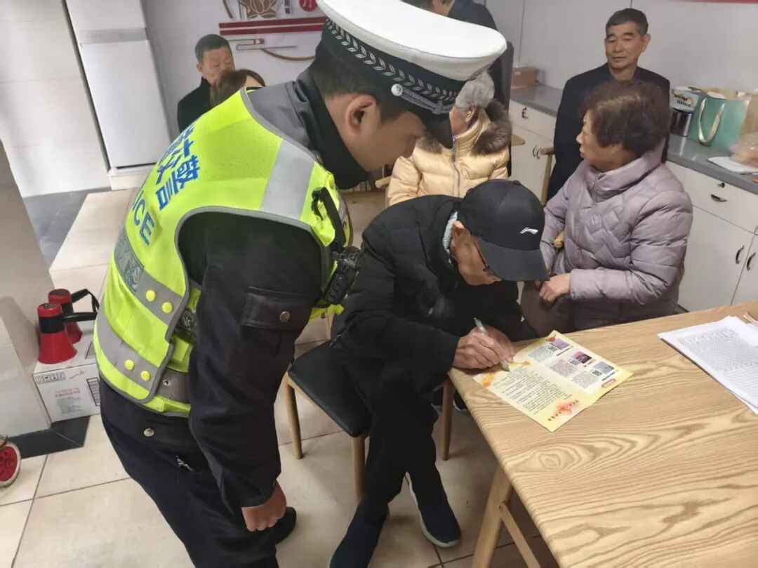 签订安全承诺 一次“有仪式感”的承诺 为增强老年人的自我防护意识,活动中专门设置签订《老年人安全出行承诺书》环节。老年人在民警引导下郑重签字,纷纷表示将信守承诺,当好自身安全的第一责任人。这一环节将宣传教育与行为引导有机结合,推动安全意识向实际行动转化。