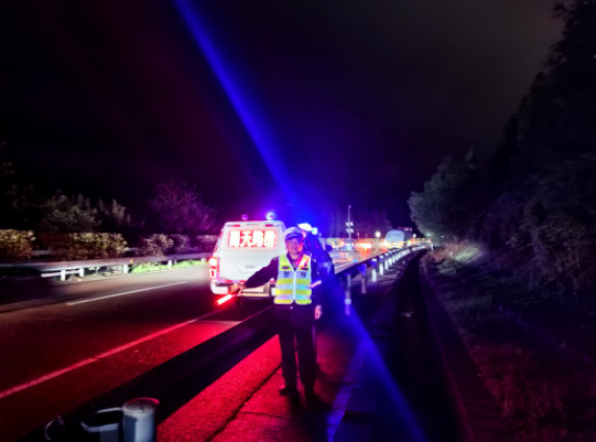 2月28日18时35分,南平高速交警支队六大队副大队长俞有忠带领辅警柴志伟巡逻至宁光高速(下行)202公里800米处时,发现一辆大型货车停在右侧车道。该车仅开启双闪,驾驶员用松树枝在车后30米处简易警示,无其他安全防护措施。该路段为弯道,车流量大、车速快,现场险情突出。 民警立即拉响警报、布设警戒,第一时间将驾驶员转移至护栏外安全区域。经了解,驾驶员张某驾车由江西前往福建,行驶至该路段时发动机突发故障,因未携带三角警示牌,只得采摘松树枝临时警示。 确认情况后,民警强化现场安全警示与管控,迅速协调救援力量到场处置。约50分钟后,故障货车被安全拖离高速。张某对交警及时救助表示衷心感谢,并承诺今后上高速前将认真做好车辆检查保养,杜绝此类情况发生。