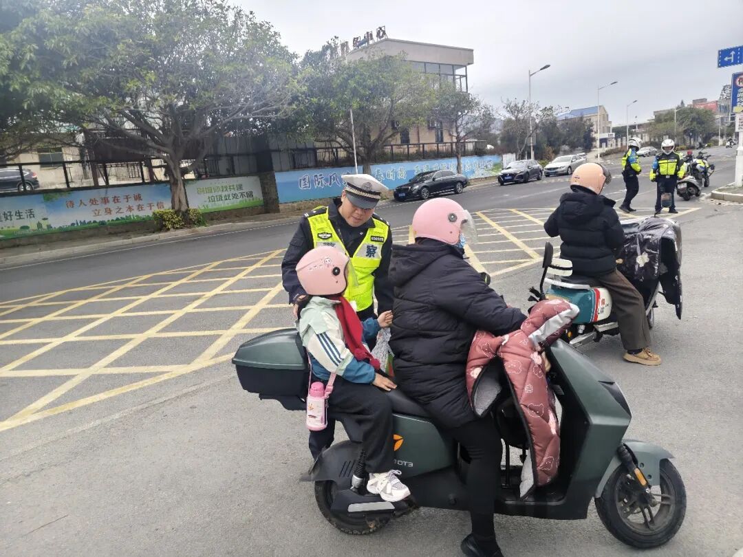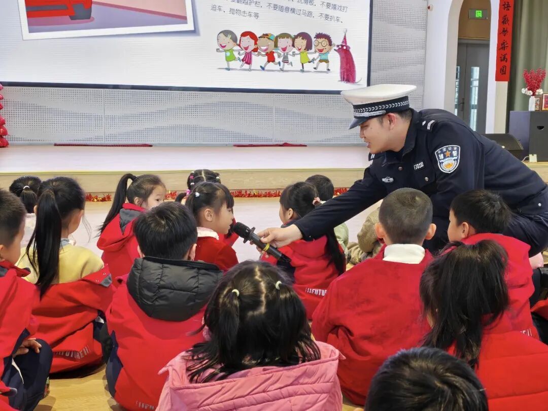 走进校园,为同学们上了一堂生动实用的交通安全“开学第一课”。课堂采用“理论+警示+互动”的方式,围绕安全过马路、规范乘车、自我防护,普及交通规则与“一盔一带”知识,提醒学生远离危险交通行为。