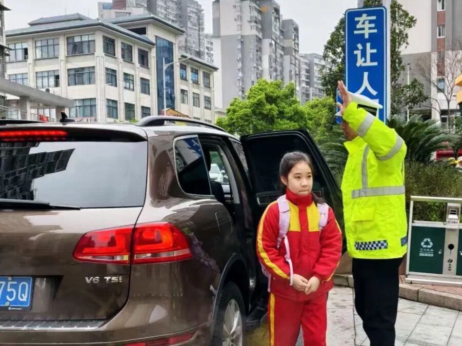 清晨的校门口,车流涌动、人来人往。一抹抹荧光绿身影准时出现在校园周边重点路段、路口,化身平安守护者。