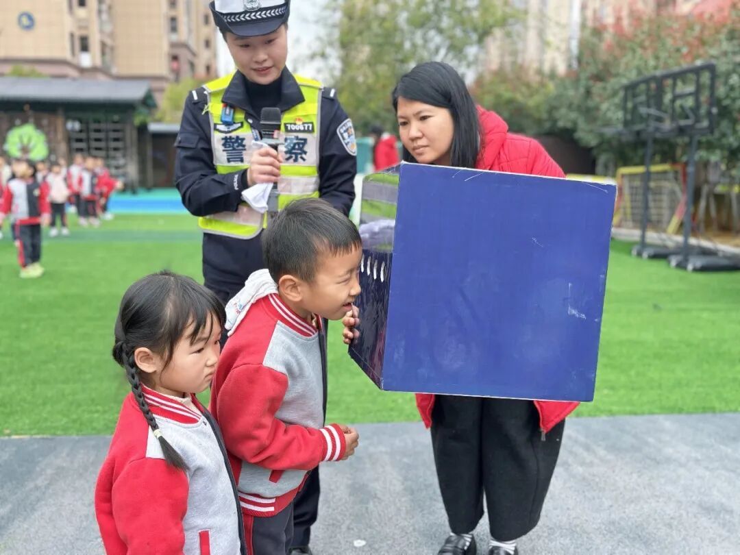 为了让交通安全知识真正走进孩子们心里,民警们精心准备了丰富多彩的宣教形式,通过播放交通安全动画片、开展互动小游戏、利用安全实验箱现场演示等形式,向学生普及行走安全、乘车规范、一盔一带等重要知识,让安全意识在国旗下扎根,在童心间生长。 科技护航,云端守护