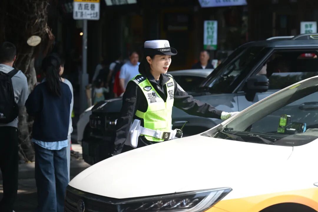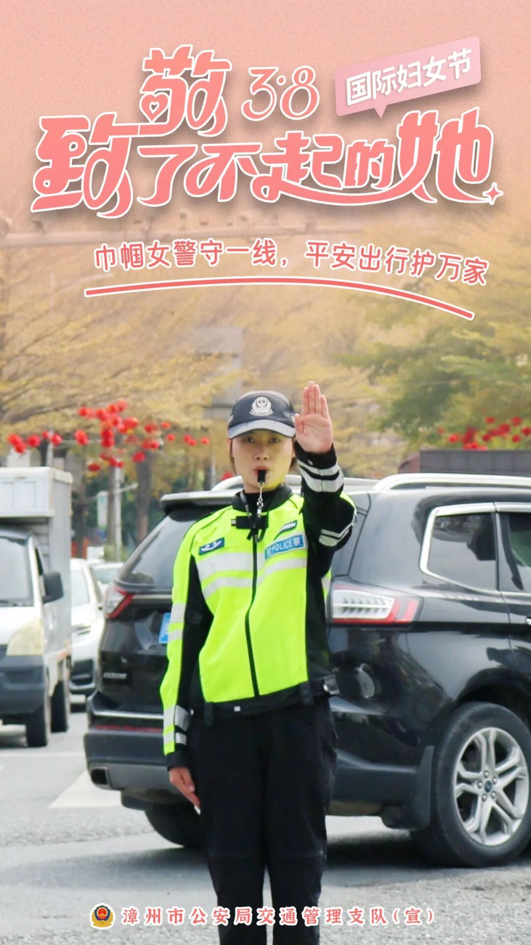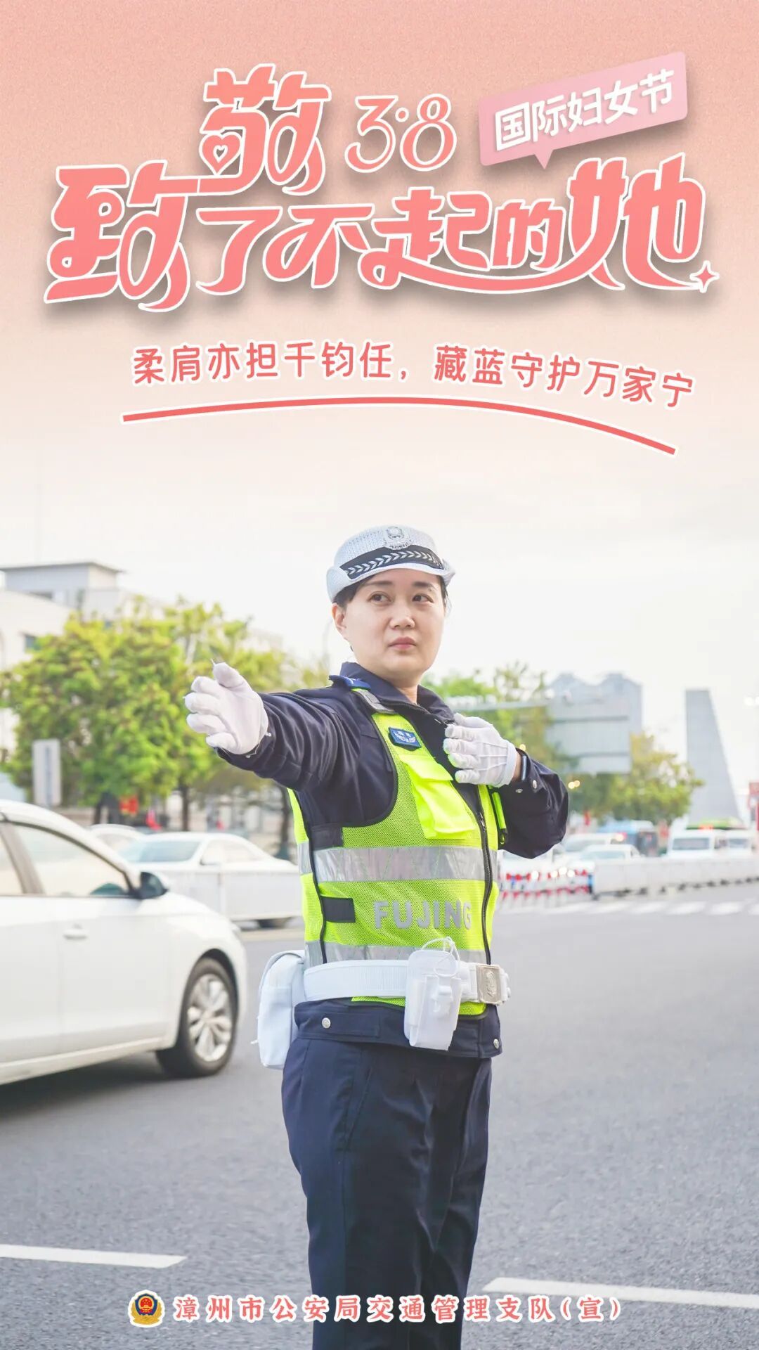 2017年,施善莲从街道办考入市局指挥中心,后来调到交警,近十年来一直从事信号灯管控与调优工作。每一个红绿灯路口,背后都有她和同事的坚守与付出,从最初分不清东西南北的 “路盲”,到如今对岛内路网了然于心的 “活地图”,她在方寸指挥台前,用专业与坚守守护着城市的交通脉络。、 03 漳州交警 {“警秀”芳华,致敬了不起的“她”} 指挥交通,疏堵保畅 英姿飒爽,手势干练 她们是道路上的“人工导航” 也是出行路上的“亮眼路标”