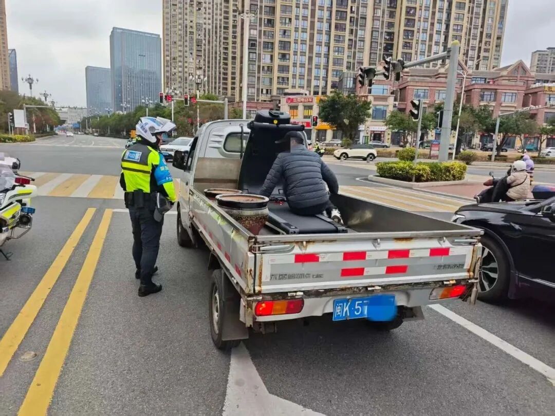 3月2日9时54分许,泉州南安交警在辖区路段执勤巡逻过程中,查处尤某驾驶闽CZ***2号轻型栏板货车存在车厢违法载1人行为。民警依法对其予以教育和处罚,并责令其安全转运违法搭载人员。 莆 田