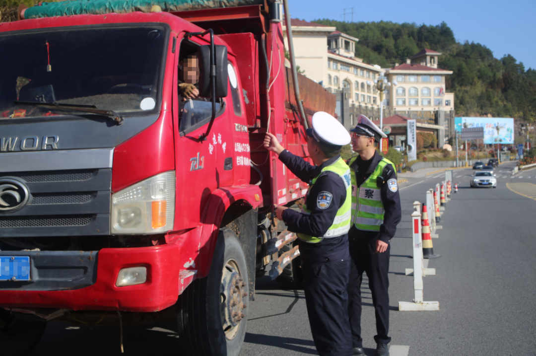 宁德交警在东侨福宁路金漳路口查获一辆重型自卸货车。经核查,该车核载15500kg,实载22640kg,超载46%。民警依法对驾驶人处以罚款500元,记3分。