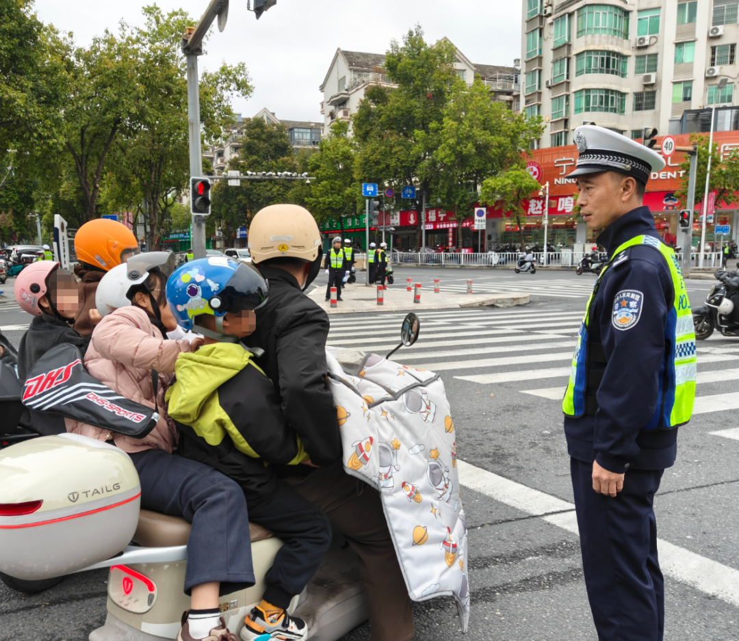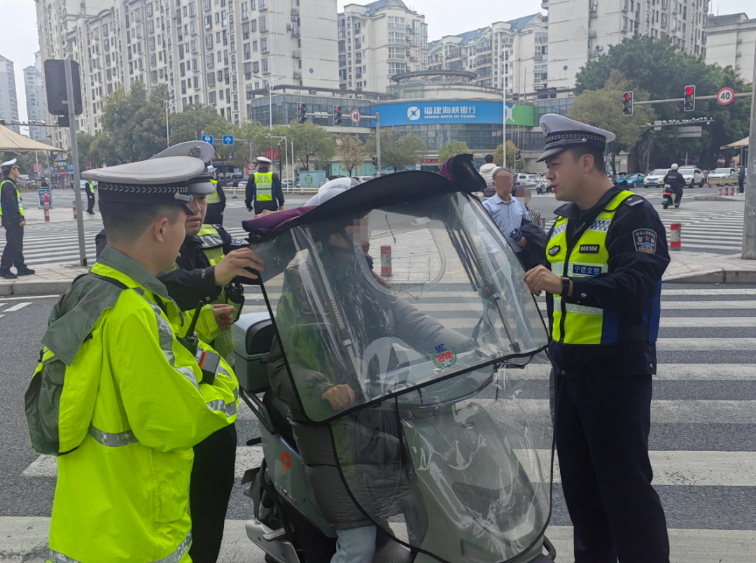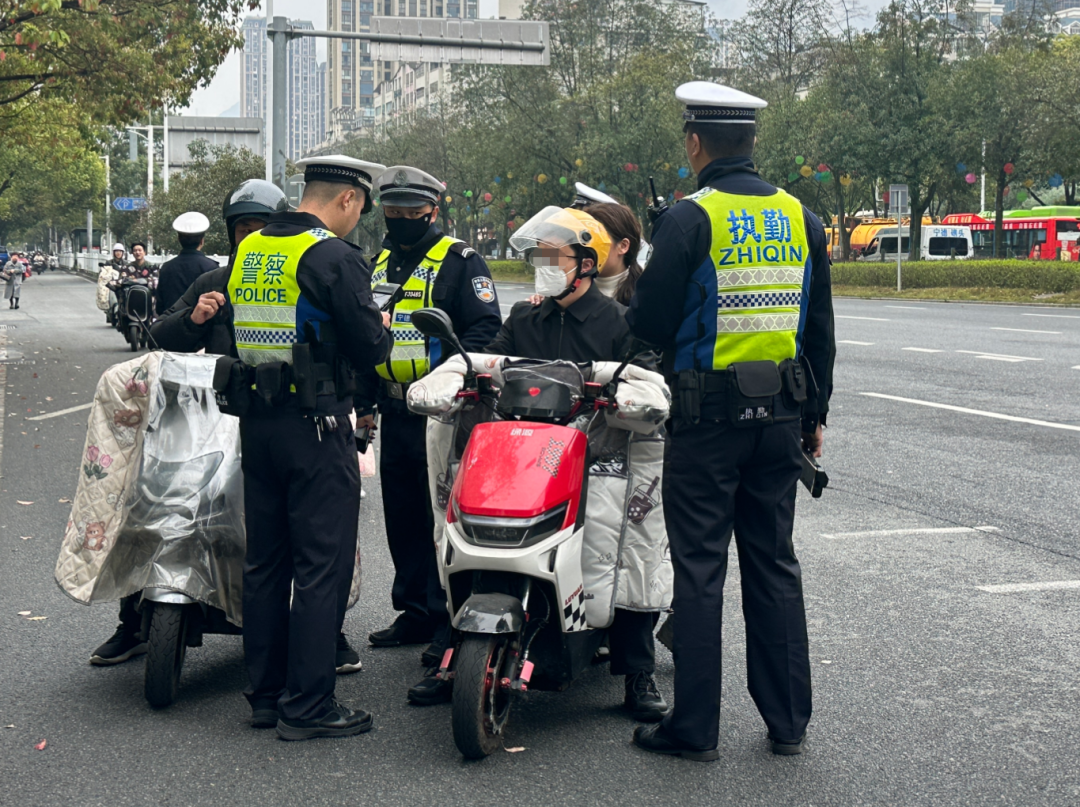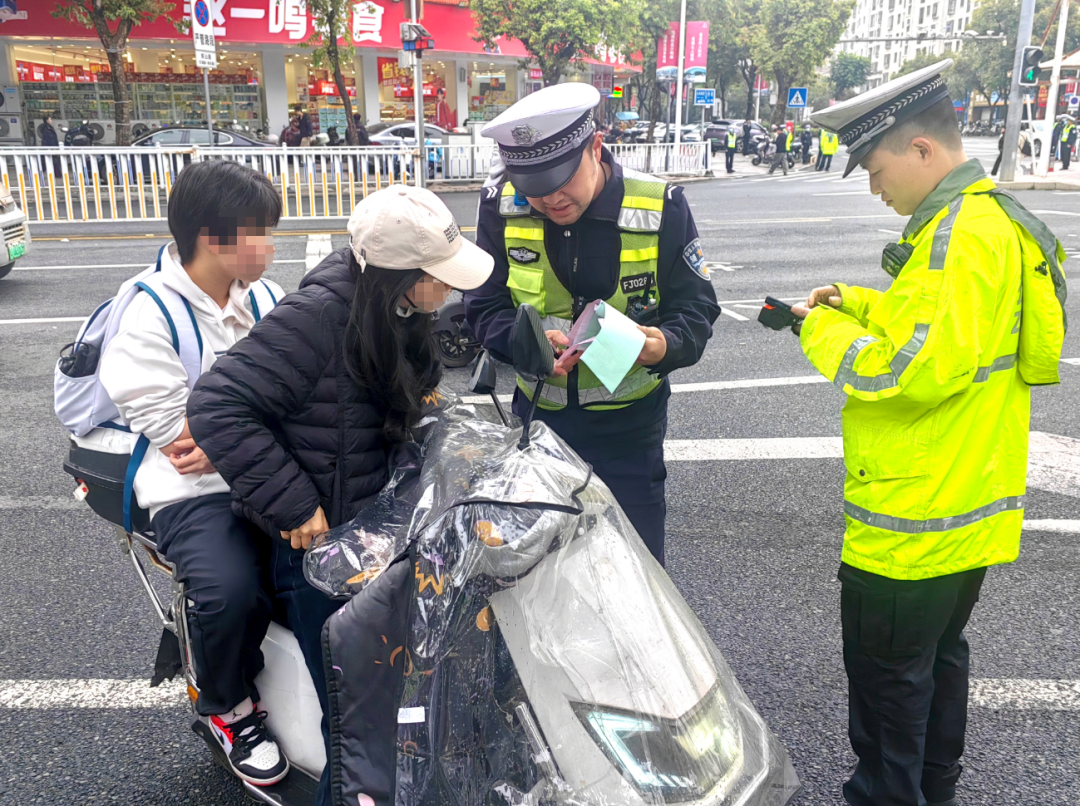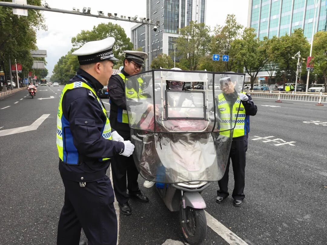 执勤警力在城区主干道等重点路段设置卡点,采取“教育+处罚”相结合的方式。针对骑乘车辆未佩戴安全头盔的,民警现场进行“手把手”教学,督促其正确佩戴;对于非法加装遮阳伞的,一律现场拆除,消除安全隐患……