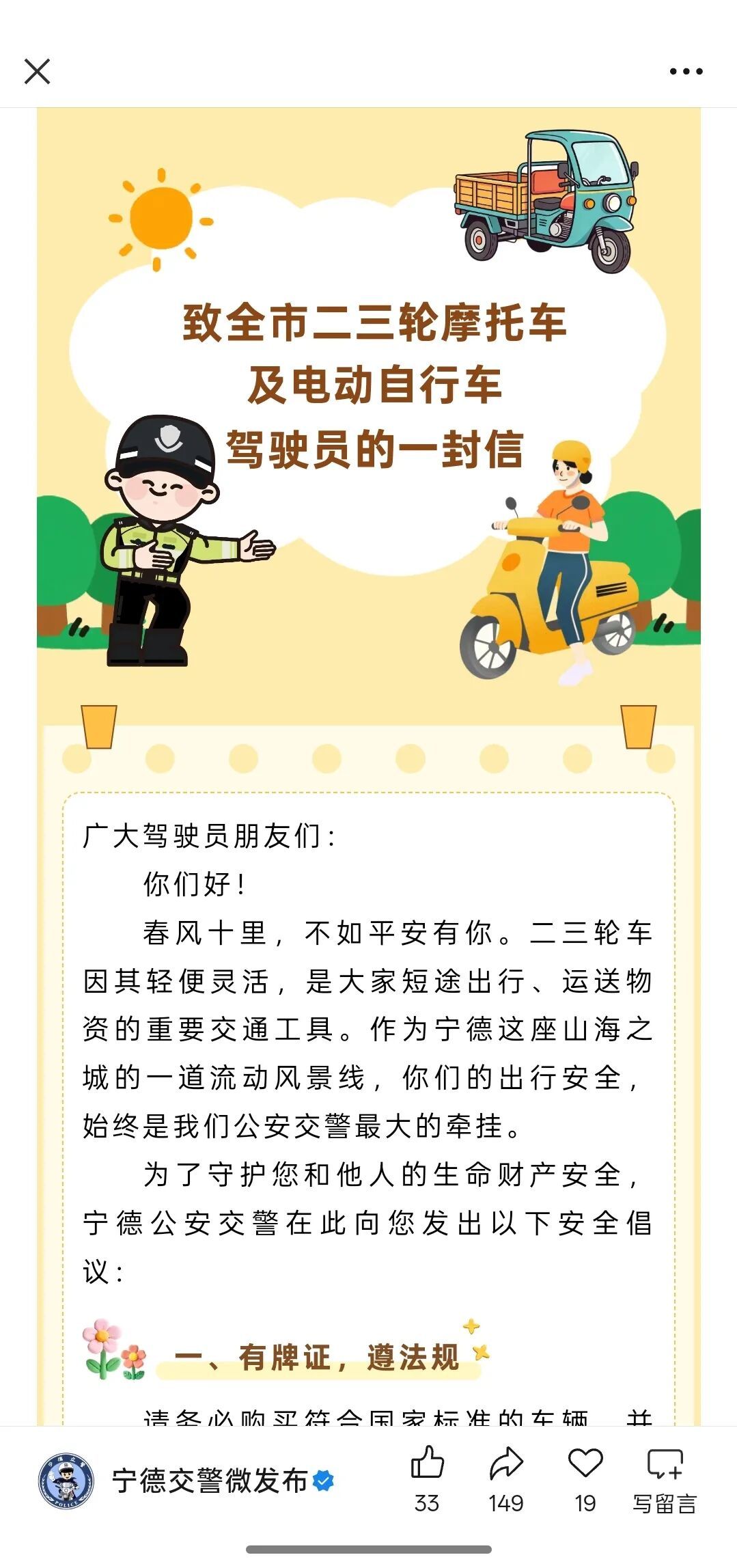 ▲屏南、福安等多地公安交警开展二三轮车安全义诊 同时 还有各地公安交警通过 张贴海报、分发宣传单页等方式 开展交安宣传
