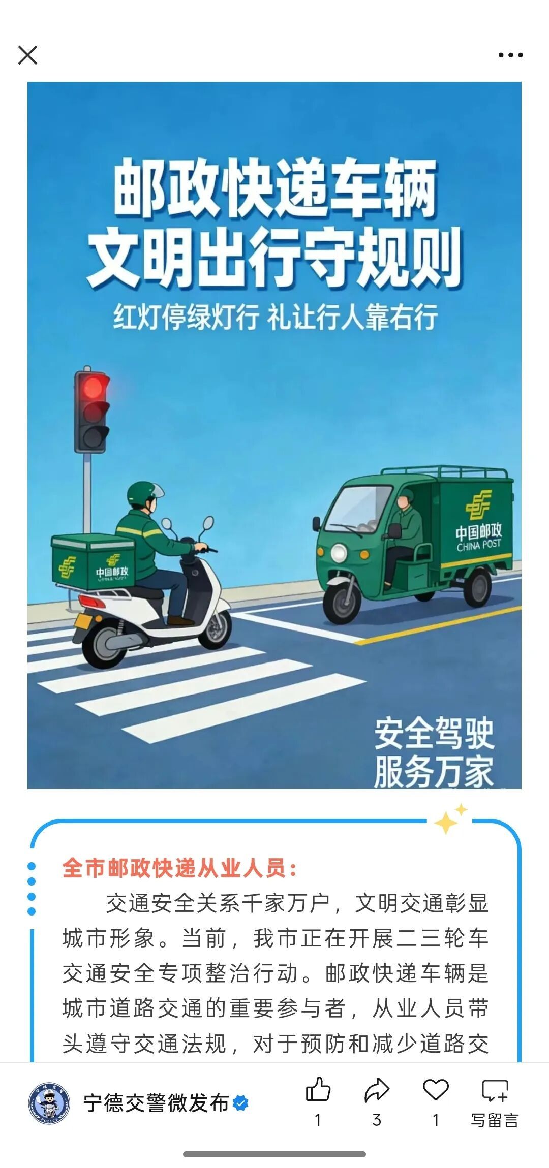 宣传“矩阵”:线上线下“声入心” 线上权威发布:官方平台及时发布二三轮车专项整治通告,面向全市邮政快递行业发布文明交通倡议书,推送安全提示、典型案例、守法指南,扩大宣传覆盖面与知晓率,引导市民自觉遵守交规。