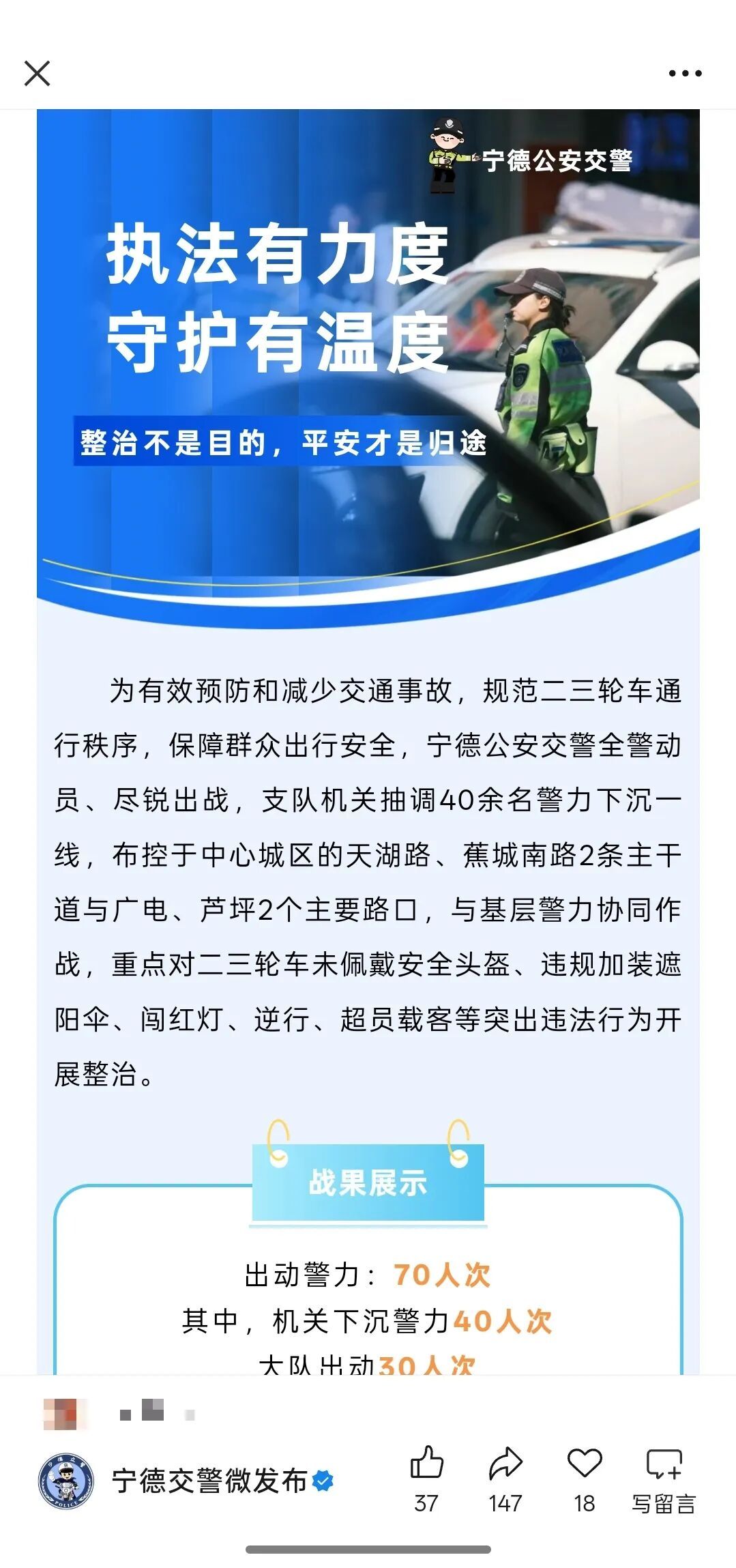 文明交通,人人有责 宁德公安交警将持续推进 专项整治常态化、长效化 全力守护道路交通安全畅通 为建设平安宁德、文明宁德保驾护航 |