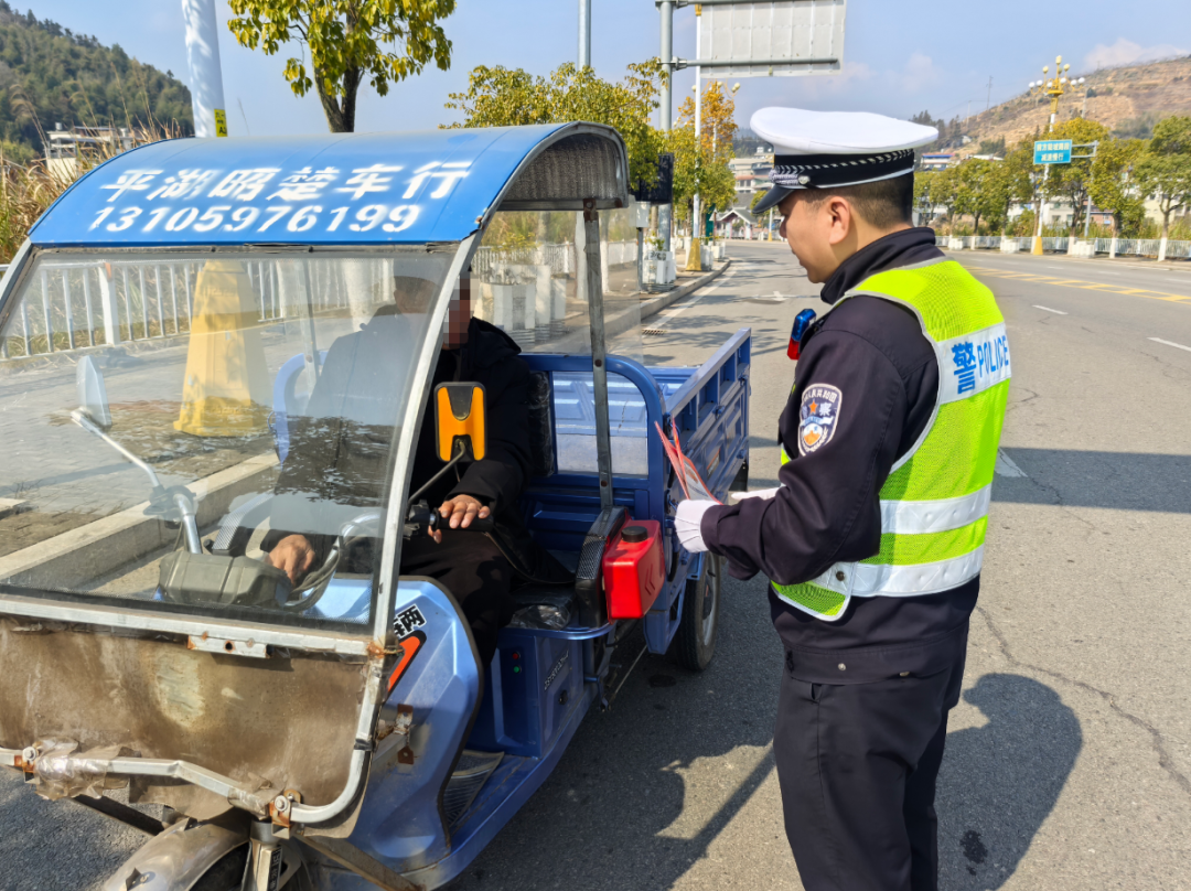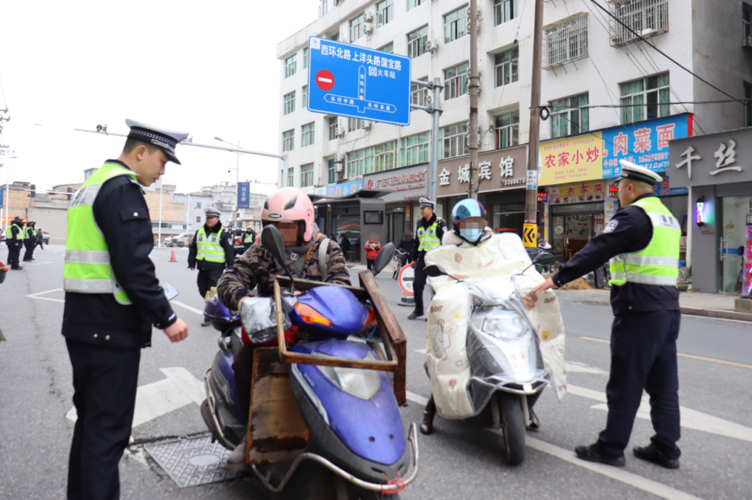 ▲严查二三轮车各类交通违法行为,严防道路交通事故发生