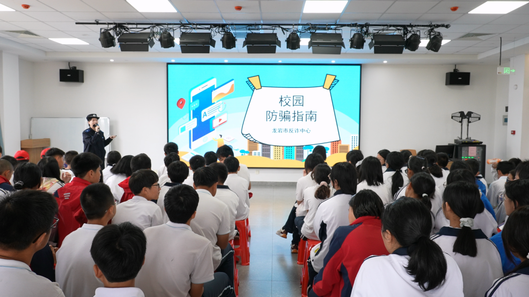 在室内安全宣讲区,交警、治安及刑侦反诈等部门的宣讲民辅警通过知识讲解、案例剖析、以案说法、互动问答等形式,与上杭县明德中学、稔田中学的同学们开展安全知识交流,重点普及交通安全、防校园欺凌及反诈防范等核心内容。
