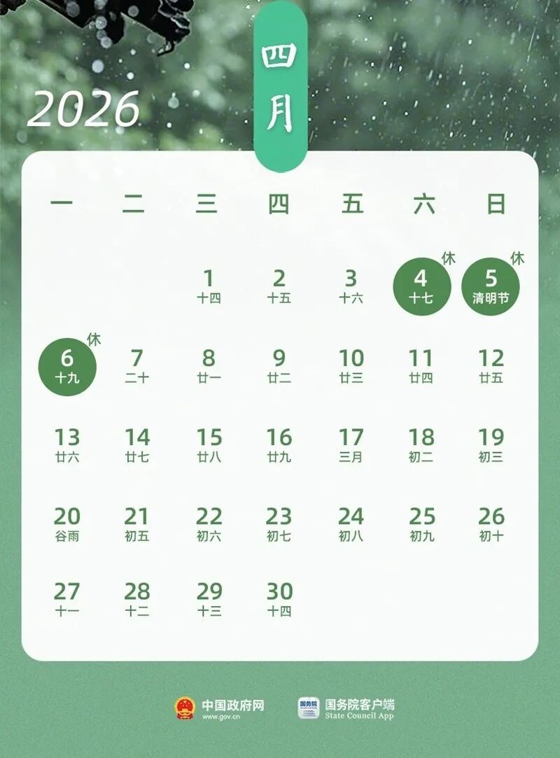 2026年“清明”假期 从4月4日至6日,为期3天 高速公路免收7座及以下小型客车通行费