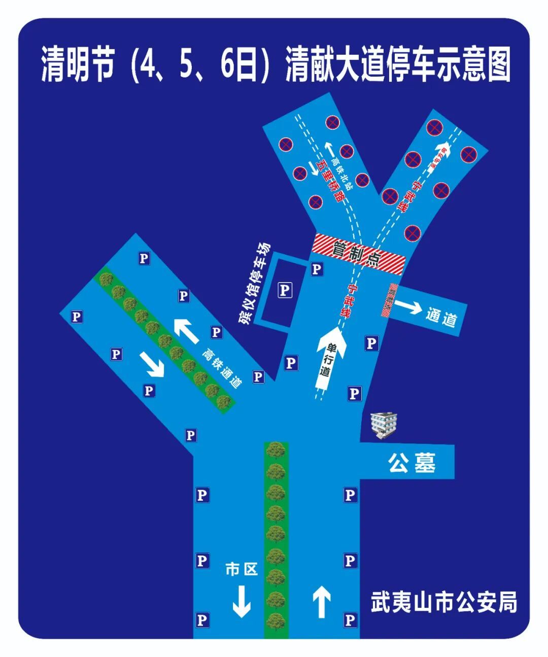 4、车辆沿清献大道两侧依次靠边停放; 5、宁武线(公墓山路口→五里桥路口)路段为单行道,车辆由公墓山路口驶入,沿五里桥路段绕行。 6、市区西门头周边通往公墓山路段车流量大,请参加祭扫的车辆尽量错开高峰期或绕高铁北站快速通道行驶,请过往车辆自觉服从现场公安交警指挥。 五、邵武市 清明期间,邵武市将针对公墓周边路段实行临时交通管制。