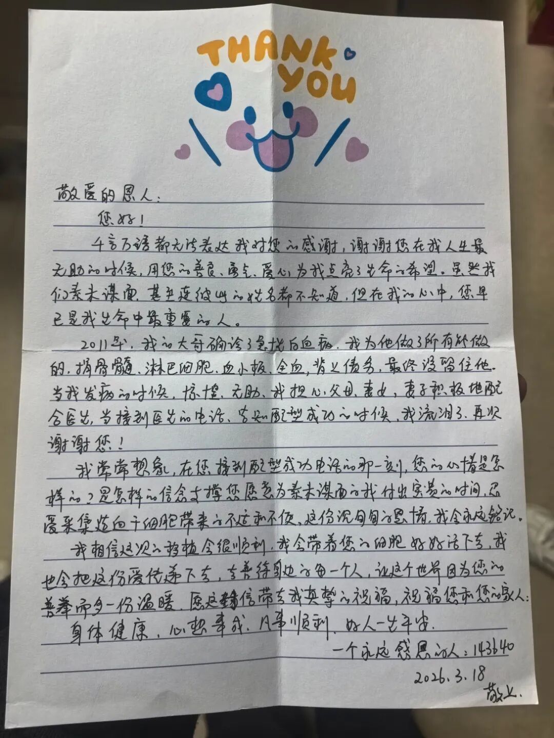 捐献结束后,受捐赠家属通过福建省红十字会转交的一封感谢信,让陈敏深受触动。信中透露,患者的哥哥曾因急性白血病不幸离世,这一直是家人心中难以抚平的伤痛。当患者自己也发病时,得知配型成功的消息,全家人重燃希望,感激之情溢于言表。