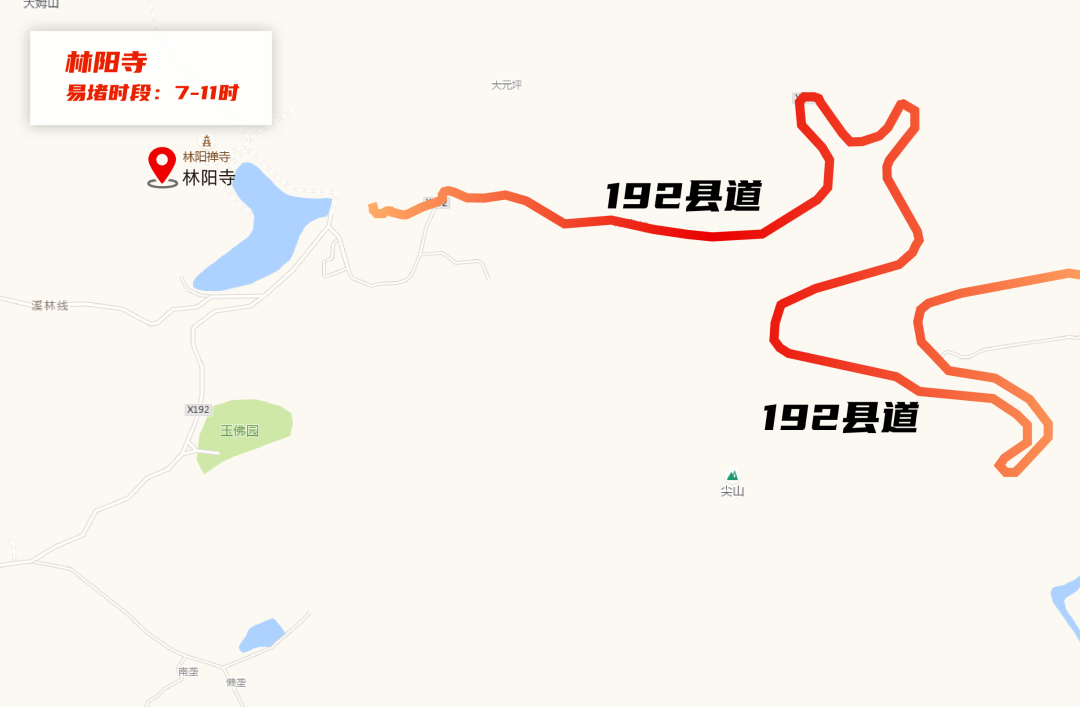 林阳寺 易堵路段为192县道,易堵时段为7时—11时。