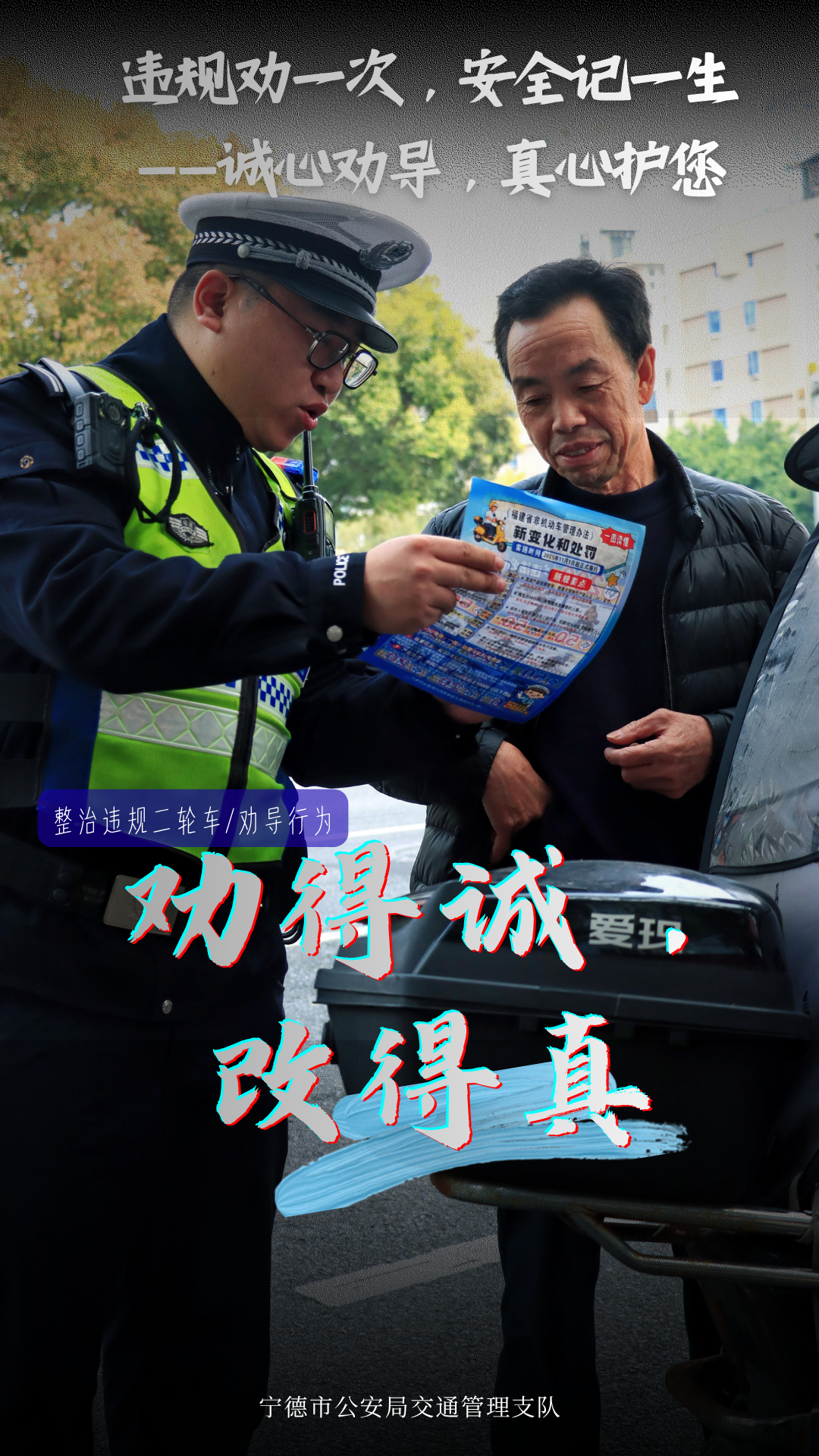 严查不是目的,平安才是终点 宁德公安交警将持续推进 二三轮车交通违法专项整治行动 用力度守护温度,用行动回应期盼 请广大驾驶人自觉遵守交规 文明出行、平安归家 |