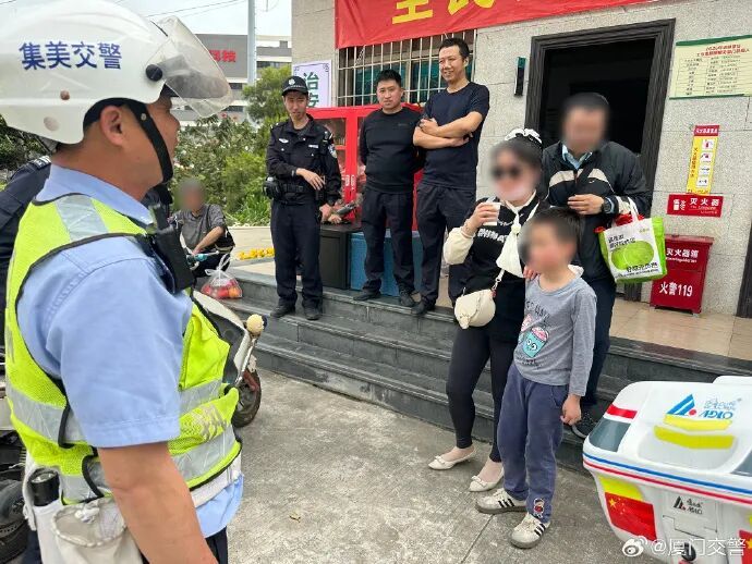 △清明祭扫期间,集美交警辅警李永发、张加展帮助走失儿童找回家长,获群众致谢。