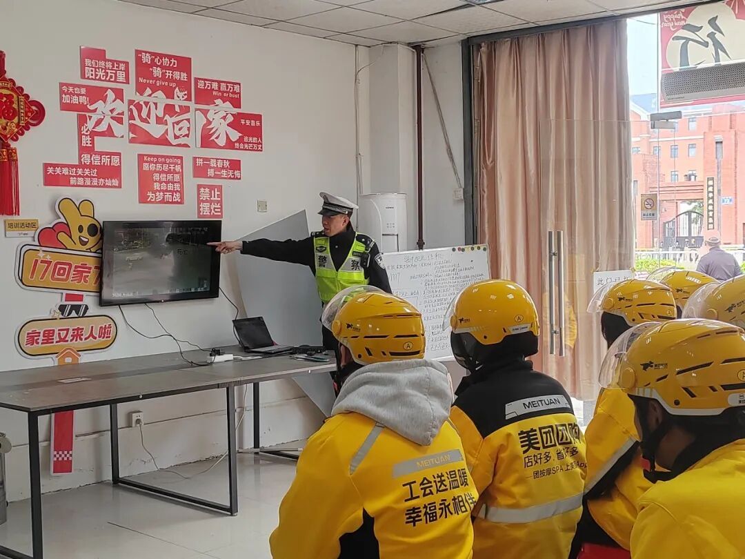 福州交警走进仓山区阳岐路“骑手之家”,结合案例视频,重点讲解非机动车通行相关法律法规,对外卖骑手开展普法宣教。