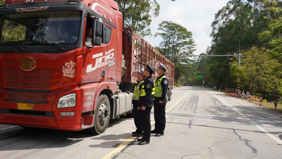 漳州交警联合交通执法支队在重点科技治超点位开展货车超限超载整治,采取定点值守与流动巡查、日间与夜间突击相结合模式,实现重点路段、时段、车型全覆盖、无缝管控。
