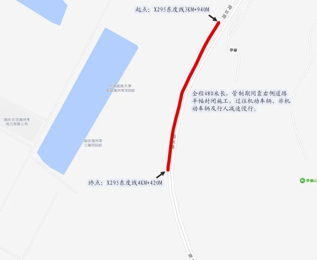 关于海丝路(县道215)施工路段 实行临时交通管制的通告 因海丝路(县道215)国投湄洲湾第三发电厂新建入厂道路工程施工需要,为确保施工期间道路交通安全、有序、畅通,根据《中华人民共和国道路交通安全法》第三十九条规定,决定对海丝路(X295东度线K3+940至K4+420段)实施临时交通管制。现将有关事项通告如下: 一、管制时间 2026年4月10日至2026年5月10日 二、管制路段及要求 管制期间,海丝路(X295东度线K3+940至K4+420段,全长480米)实行右侧半幅封闭施工,过往车辆及行人请减速慢行。