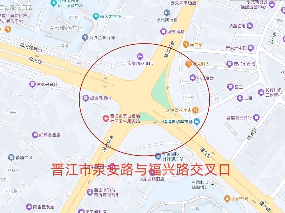 3、晋江市泉安路与福兴路交叉口(7:00-23:00,禁止重型车辆通行)