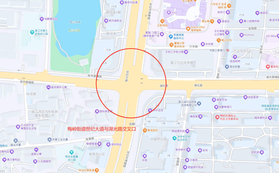 4、晋江市世纪大道与湖光路交叉口(7:00-23:00,禁止重型车辆通行)