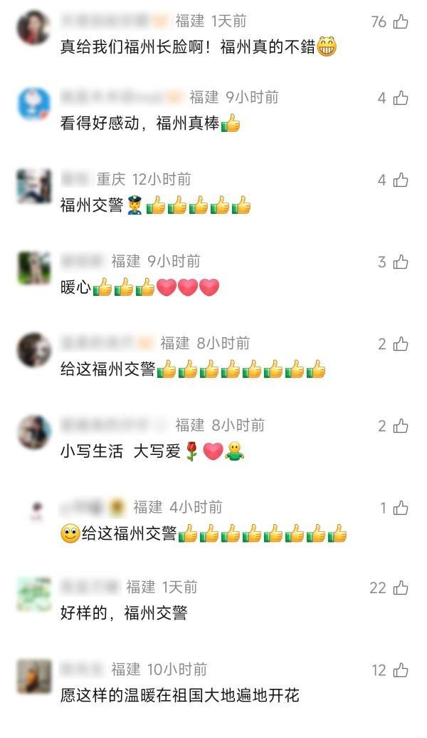 “带导盲犬叮当在福州坐滴滴,被一位暖心交警狠狠治愈。”一位来福州旅游的游客@汪涛和导盲犬叮当,发布了几段视频,让不少网友真切感受到了这座城市的“温度”。 那天傍晚,在杨桥路达明路口,汪先生正带着导盲犬叮当小心翼翼地准备过马路。路口执勤的福州铁骑注意到他,主动上前询问。得知汪先生是视障人士后,铁骑一边留意来往车辆,一边耐心引导他和叮当安全通过斑马线。 了解到他想去达明美食街尝尝福州味道,铁骑又热心地当起了“临时导游”,一路为他指路,还不忘细心叮嘱:“前面有路障,注意脚下。” 第一次是幸运,第二次是幸福!当晚汪先生在附近另一处路口,再次被福州铁骑注意到,温暖的一幕再次上演。 当晚,汪先生带着叮当在路边等候网约车。由于视线不便,他只能将手机贴近耳边听单,加上周边排队车辆较多,在路口徘徊了许久。 正在执勤的福州铁骑远远注意到他的困境,主动快步上前,全程温柔耐心地引导他和叮当安全上车。那一刻,他说,自己虽然看不见,但心里特别踏实。 这些暖心举动,被@汪涛和导盲犬叮当记录下来发布后,收获网友纷纷点赞——