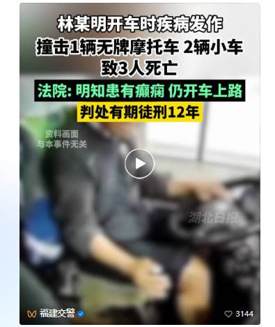 2025年4月,广东省潮州市中级人民法院对一起因癫痫发作导致的重大交通事故案作出终审判决,被告人因以危险方法危害公共安全罪被判处有期徒刑12年,案件引发社会广泛关注,其背后暴露的“病驾”隐患令人深思。 02 案例二